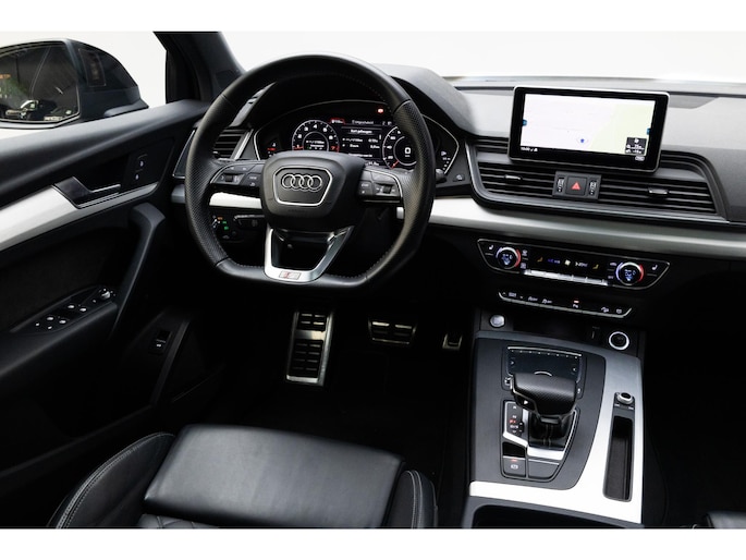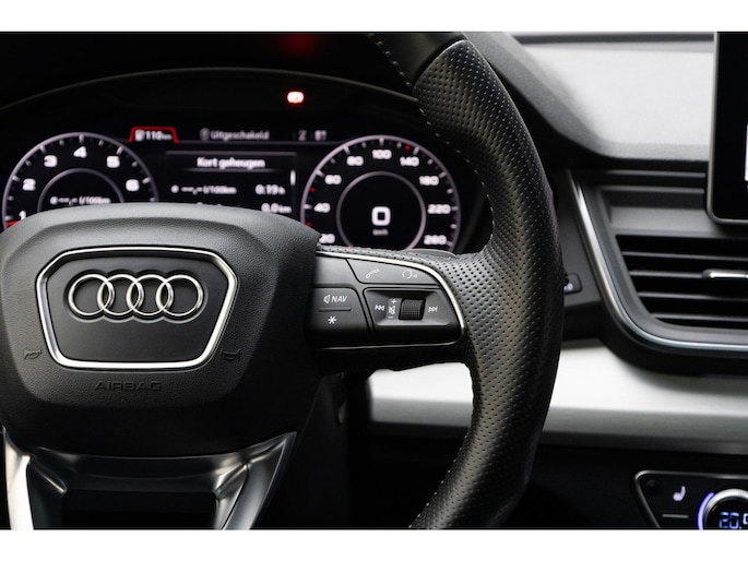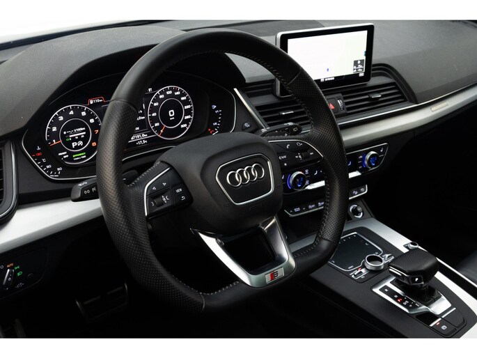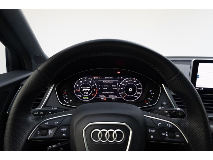 Je ziet het al aan de buitenkant en je voelt het zodra je de krachtige motor start, deze sportieve Audi Q5 is gemaakt om prestaties te leveren. We hebben het hier over een auto uit 2018, hij heeft 95730 kilometer gelopen. De S-Line styling geeft deze auto een bijzonder karakter en staat voor sportiviteit en exclusiviteit. In deze auto vind je een benzinemotor en een automatische transmissie. Licht en lucht komen onbelemmerd binnen als je het elektrisch bediende glazen panorama dak met één druk op de knop opent. En net zo gemakkelijk gaat de elektrisch bedienbare achterklep open. Kijk, en die stoelverwarming, dat is nou echt comfort. Helemaal als het buiten winters aanvoelt. Dankzij de matrix LED-verlichting geven de koplampen ook in het donker daglicht. Bij de uitrusting van deze auto horen onder meer 19 inch lichtmetalen velgen, sportonderstel, warmtewerend glas, dakspoiler, in delen neerklapbare achterbank en LED-achterlichten.