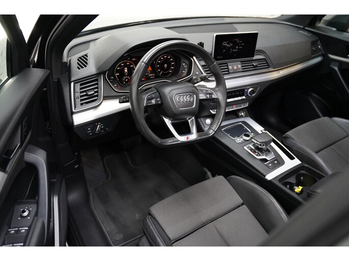 Gebouwd voor liefhebbers van autorijden, deze Audi Q5 levert sportieve prestaties en onafgebroken rijplezier. Met de S-Line styling mag deze auto zeker gezien worden. De uitstekende prestaties van deze auto komen van de viercilinder motor en de automatische transmissie. Deze auto staat extra stevig op de wielen onder alle omstandigheden dankzij de vierwielaandrijving. Van binnen lijkt het allemaal uitermate ruim dankzij de vrije inval van daglicht via het elektrisch bediende glazen panorama dak. Comfort en luxe? Dat krijgt u door het lederen interieur. En optimaal gemak is er in de vorm van de elektrisch bedienbare achterklep. Mooi om te zien en heerlijk om in te zitten zijn de sportstoelen, die u onderweg optimale ondersteuning geven. De aanwezige luchtvering zorgt voor meer veiligheid en rijcomfort onder alle omstandigheden. Tot de voorzieningen van deze auto behoren 20 inch lichtmetalen velgen, LED koplampen, warmtewerend glas, in delen neerklapbare achterbank, LED-achterlichten en verstelbare lendensteunen.