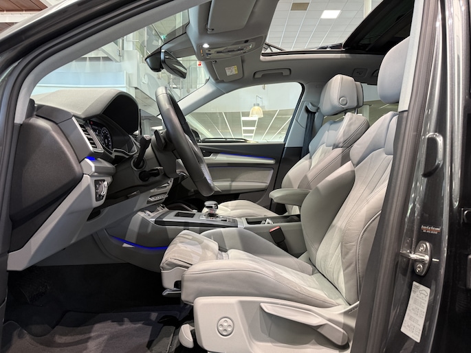 Zeer mooie en complete Audi Q5 50 TFSI e S Edition. Voorzien van. o.a. S-Line pakket, luchtvering, Elektrisch wegklapbare trekhaak, Sfeerverlichting Plus, 21inch Audi sport wielen + Michelin PS EV banden, 360graden camera, Adaptieve cruise control, Keyless entry en start, Dynamische knipperlichten, Stoelverwarming, Stoelverwarming achter, Head-Up display, Panoramisch schuif-/kantel dak, Geluidsisolerend glas, etc. Meer weten? 0485-331249