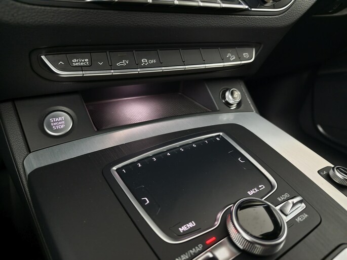 Zoals u mag verwachten van deze Audi Q5 is hij uitgerust met een reeks aan actieve veiligheidssystemen. In het instrumentarium kunt u bovendien de verkeersborden zien die u onderweg tegenkomt. Zo helpt deze Audi u om veiliger te rijden. Het forward collision warning-systeem waarschuwt indien een botsing dreigt met een voorliggend of tegemoetkomend voertuig. Dankzij veiligheidsvoorzieningen als brake assist en bandenspanningcontrolesysteem, bent u steeds veilig onderweg.