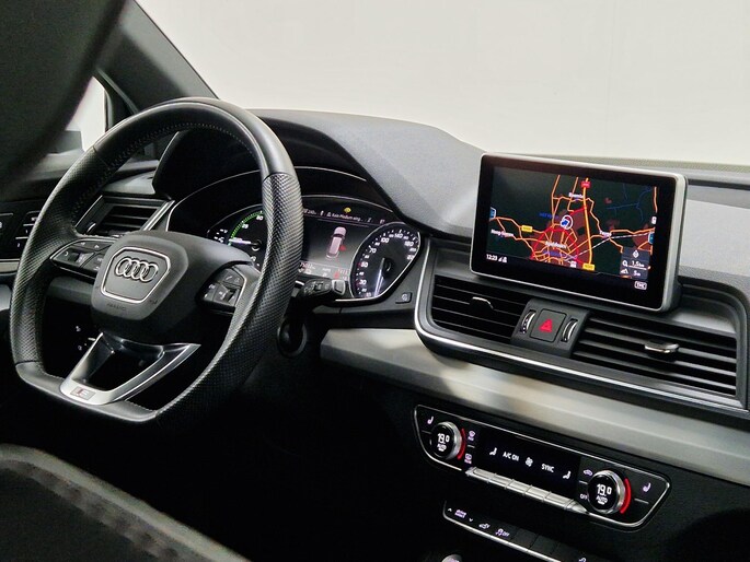 Geen andere techniek heeft in deze eeuw de automobiel zo veranderd als de hybridetechniek. De S-Line styling voegt een aantal uitgesproken sportieve accenten toe. De hybride motor combineert het gebruik van brandstof en elektriciteit, en dat maakt van deze Audi Q5 een zuinige, slimme auto. Hobbeltjes en oneffenheden in de weg zoeven onvoelbaar onder u door dankzij de luchtvering. Ook een fijne dosis klasse is bijgeleverd, met het lederen interieur. Behaaglijk onderweg zijn? Als bestuurder geniet u van de verwarmbare voorstoelen met massagefunctie. Net als uw bijrijder! De sportstoelen houden u en uw bijrijder goed op z'n plek tijdens het accelereren en bij het nemen van scherpe bochten. Een praktische extra is de elektrisch bedienbare achterklep die opent en sluit met een druk op de knop. Ook is de auto voorzien van: 20 inch lichtmetalen velgen, LED koplampen, warmtewerend glas, in delen neerklapbare achterbank, LED-achterlichten en verwarmde ruitensproeiers.