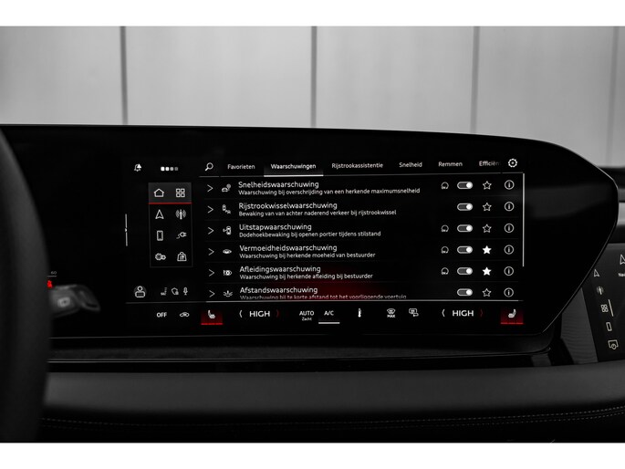 Iedere rit in een elektrische auto is een weldaad: u rijdt ontspannen en in alle rust, er is volop vermogen en u komt verkwikt op uw bestemming aan. Fiscaal aantrekkelijk is de elektromotor, waarmee u niet alleen stil maar ook uitermate pittig kunt rijden. De S-Line styling accentueert het sportieve karakter van deze Audi. We hebben het hier over een nieuwe auto, hij is nu direct leverbaar. De krachtige motor geeft deze Audi uitstekende prestaties. Alles aan deze auto is ontworpen voor comfort, tot aan de stoelverwarming, verwarmbare achterbank, en verwarmbaar stuur. Opvallend zijn de stoere sportstoelen, die zorgen voor een onwrikbare zit in de scherpe bochten. De elektrisch bedienbare achterklep opent met een druk op de knop. Daglicht bij nacht? De koplampen met matrix LED-verlichting zorgen ervoor. Ook is de auto voorzien van: 20 inch lichtmetalen velgen, sportonderstel, geluidsisolerende ramen, in delen neerklapbare achterbank, LED-achterlichten en verstelbare lendensteunen. U wordt geïntroduceerd tot de digitale wereld van mobiliteit waarop alles wat u wenst wordt geprojecteerd op het digitale dashboard. Het gebruik van de 360 graden camera op deze auto zorgt voor een groter gezichtsveld en helpt de dode hoeken te elimineren. Met adaptive cruise control houdt de auto zelfstandig afstand tot uw voorligger. Een veiligheidsverhogende optie waarmee u comfortabel onderweg bent. Dankzij Connected Services weet u precies waar uw auto geparkeerd staat. Ook andere functies, zoals bandenspanning en brandstofniveau, zijn via de app altijd onder handbereik. Met de routebegeleiding van het navigatiesysteem kunt u zich volledig op het verkeer concentreren. Ook is de Audi uitgerust met: achteropkomend verkeer waarschuwing, automatische airconditioning, draadloos opladen, DAB ontvangst, regensensor en keyless entry. Geavanceerde technische systemen houden tijdens elke rit het verkeer in de gaten en reageren op potentieel gevaarlijke situaties. Wat deze auto ook kan, is lezen. Hij 'leest' voor u de verkeersborden tijdens de rit en attendeert u erop door ze op het dashboard te projecteren. Voorzien van het Lane-keeping systeem. Ofwel: blijf automatisch in je baan. Om te voorkomen dat u tijdens lange ritten achter het stuur in slaap valt, is deze auto voorzien van vermoeidheidsherkenning. U bent mede dankzij dodehoekdetectie, hill hold functie en frontale botsbescherming steeds veilig onderweg. Natuurlijk is dit een splinternieuwe auto en hij wordt dus geleverd met volledige fabrieksgarantie. Daarbij kunnen we u verschillende gunstige financieringsvormen aanbieden. We maken graag een afspraak met u.