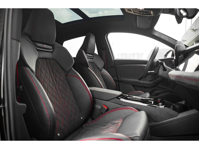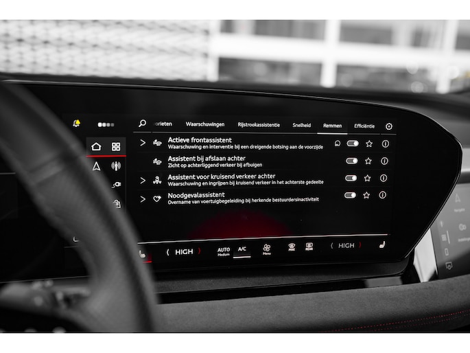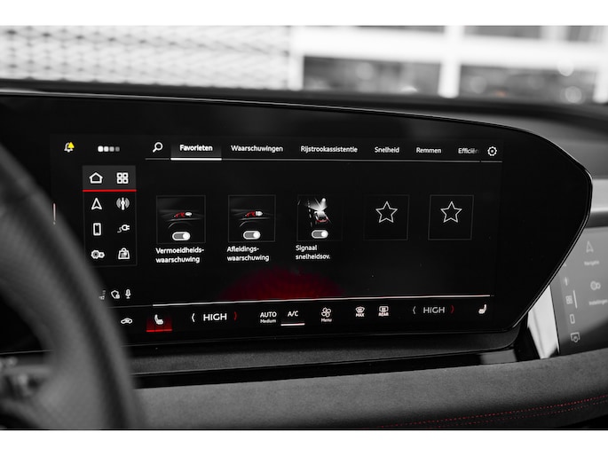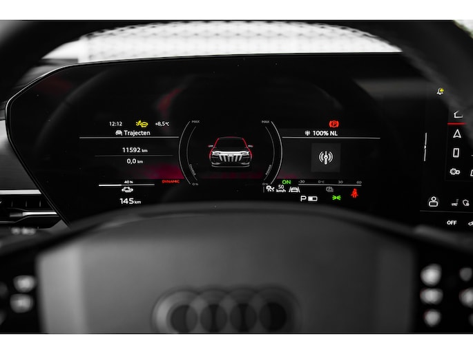 Hij biedt volop ruimte, deze Audi Q6 Sportback e-tron, en dankzij zijn elektrische aandrijving is er ook plenty vermogen voor een dynamische rijstijl. De modernste techniek is toegepast om u in alle rust en stilte van de rit te laten genieten. Daarbij zult u zien dat de tijd om de accu's op te laden enorm meevalt, en dankzij de flinke actieradius hoeft u dat ook niet zo vaak te doen. S-Line styling benadrukt de sportieve functionaliteit van het ontwerp. Een krachtige motor geeft deze auto zijn sportieve prestaties. Dankzij de stoelverwarming, verwarmbare achterbank en het verwarmbare stuur in deze auto, krijgt het begrip rijcomfort een nieuwe betekenis. De sportstoelen geven u veel zitsteun. Uitstekend wegcontact, extreem lage windgevoeligheid: de luchtvering zorgt ervoor! De bagageruimte is toegankelijk via een comfortverhogende elektrische achterklep. Vergezichten krijgen een extra dimensie door het glazen panoramadak. De verlichting van de koplampen geeft het gevoel dat het altijd dag is. De slimme matrix LED-technologie past zich aan bij tegenliggers, zonder verlies van lichtkwaliteit. In deze Audi profiteert u onder andere ook van: 20 inch lichtmetalen velgen, sportonderstel, geluidsisolerende ramen, in delen neerklapbare achterbank, LED-achterlichten en verstelbare lendensteunen. Altijd de benodigde functies in beeld? Het digitale dashboard zorgt ervoor. Het inventieve 360 graden camerasysteem op deze auto heeft de functie om u assistentie te bieden in nauwe ruimtes en straten, waar het achteruit rijden vaak een uitdaging is. Adaptive cruise control is een comfortabele en veilige optie. Het systeem reguleert de snelheid en houdt automatisch afstand tot uw voorligger. De speciale app verbindt met Connected Services, die de status van vitale functies bijhoudt en waarschuwt als u bijvoorbeeld moet tanken, de bandenspanning moet controleren of olie moet bijvullen. In deze Q6 Sportback e-tron vindt u schakelaars op het stuur om het navigatiesysteem te bedienen en het audio-installatiesysteem met DAB-ontvangst. Ook achteropkomend verkeer waarschuwing, automatische airconditioning, draadloos opladen, regensensor, keyless entry en automatisch dimmende buitenspiegels zijn aan boord. Het rijden met deze Audi wordt nog meer ontspannen dankzij de innovatieve technieken die onderweg over uw veiligheid waken. In het instrumentarium laat de verkeersborddetectie de actuele verkeersborden zien. Keep your lane? Het Lane-keeping systeem zorgt er automatisch voor. Het laatste wat u wilt is dat u achter het stuur indommelt. Om dat te voorkomen is deze auto uitgerust met vermoeidheidsherkenning. Verder is deze auto uitgerust met dodehoekdetectie, hill hold functie en frontale botsbescherming. Wanneer wilt u een proefrit maken? Neem contact op en we maken een afspraak voor een muisstille rit in deze elektrische droomauto!
