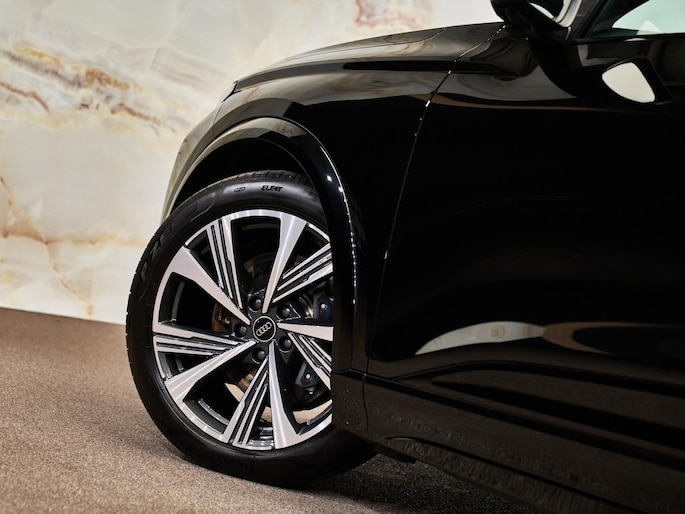 Mythoszwart metallic (0E0E) lak in combinatie met het Zwart optiekpakket (PAH) en de 21” lichtmetalen velgen (46X) geeft de SQ6 e-tron een krachtige en sportieve uitstraling. De Privacybeglazing (QL5), Matrix LED-koplampen (PXC) en Digitale OLED-achterlichten (8VY) met dynamische animatie zorgen voor een opvallende lichtsignatuur. De Dakreling zwart (3S2) en de donkere Audi-ringen (4ZP) onderstrepen het sportieve karakter, terwijl het Panoramadak (3FU) het interieur vult met licht en ruimte.