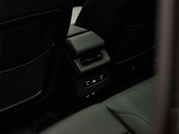 Binnenin treft u een luxueuze ambiance dankzij de Sportstoelen plus in Fijnnappa leder zwart (PWO / N3M) met elektrische verstelling (3L5), pneumatische lendensteun (8I6) en geheugenfunctie voor de bestuurder (AI1). De Stoelverwarming vóór en achter (4A4) en Stuurwielverwarming (AI9) zorgen voor comfort onder alle omstandigheden. Het MMI-passagiersdisplay (JH1) en de Ambienteverlichting (QQ4) creëren een moderne, stijlvolle sfeer, terwijl de Automatische airconditioning met 3 zones (9AU) en de Servosluiting achterklep (4E7) het dagelijkse gebruiksgemak verhogen.