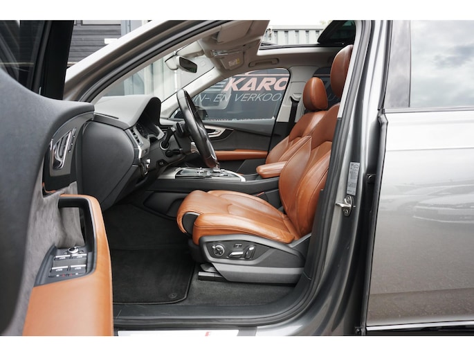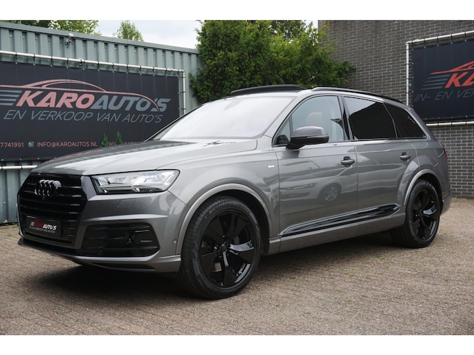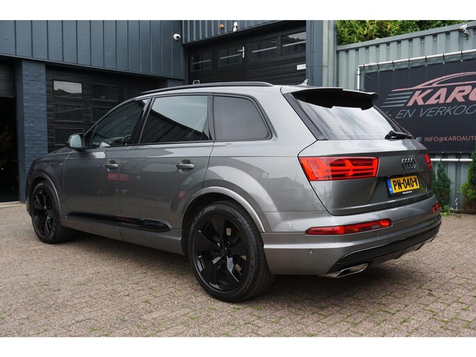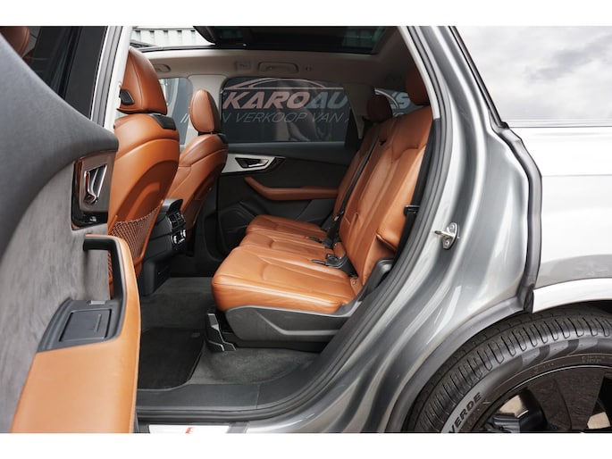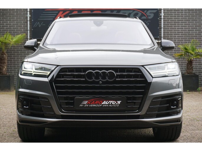 Zeer nette en exclusieve volledig onderhouden Audi Q7 3.0 TFSI 333PK S-tronic automaat 7-persoons S-line voorzien van alle denkbare opties zoals; panoramadak, black edition accenten, led matrix koplampen, led achterlichten, Head Up display, 360 camera, navigatiesysteem, luxe lederen sportstoelen, elektrisch bedienbare voorstoelen met memory, stoelkoeling/stoelverwarming, spraakbediening, virtual cockpit, drive select mode, adaptieve cruise control (ACC), meedraaiende achteras, luchtvering, gevarenherkenning, lane assist, side assist, dodehoek detectie, keyless entry/go, park assist, nachtzicht, multimediasysteem met usb/bluetooth/radio, parkeersensoren voor en achter, start/stopsysteem, Bose audio, climate control voor en achter, lendensteun, stoelverwarming achter, elektrische ramen voor en achter, elektrisch bedienbare/verwarmbare/inklapbare spiegels, stuurwielverwarming, multifunctioneel lederen stuurwiel, led dagrijverlichting, led achterlichten, led dynamische knipperlichten, led interieurverlichting, armsteun, bluetooth carkit, elektrisch bedienbare achterklep, standkachel, trekhaak uitklapbaar, dimlichten automatisch, regen- en lichtsensor, binnenspiegel automatisch dimmend, 21 inch lichtmetalen zwarte Audi velgen met Pirelli zomerbanden, stuurbekrachtiging, centrale deurvergrendeling op afstand, 2 sleutels en nog veel meer.