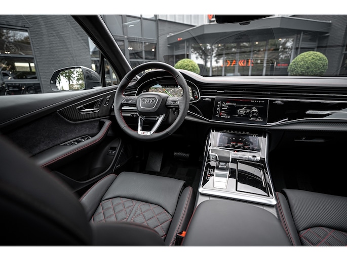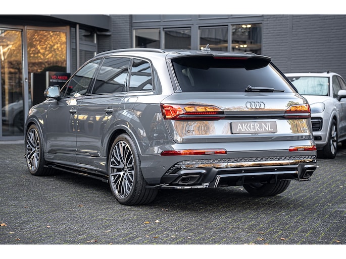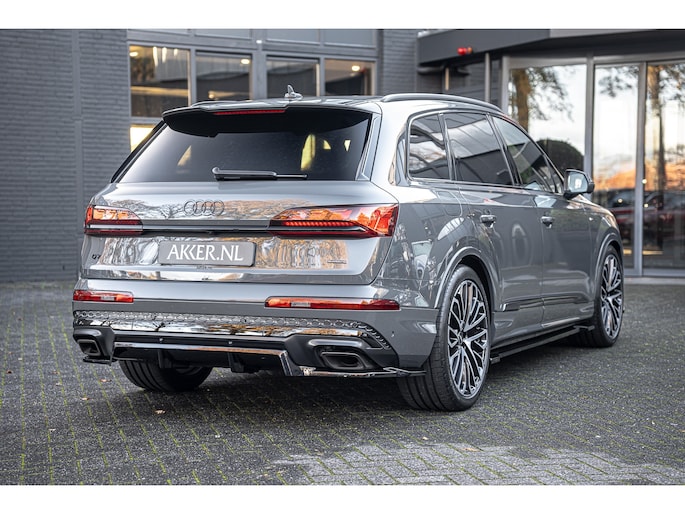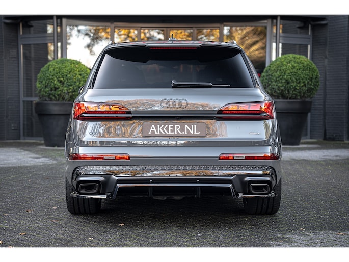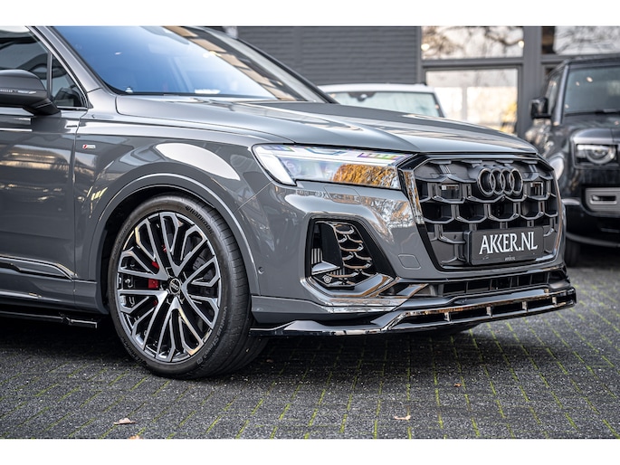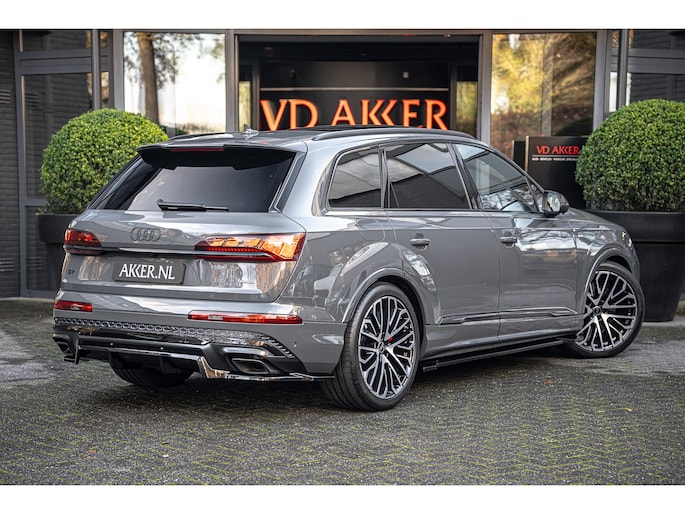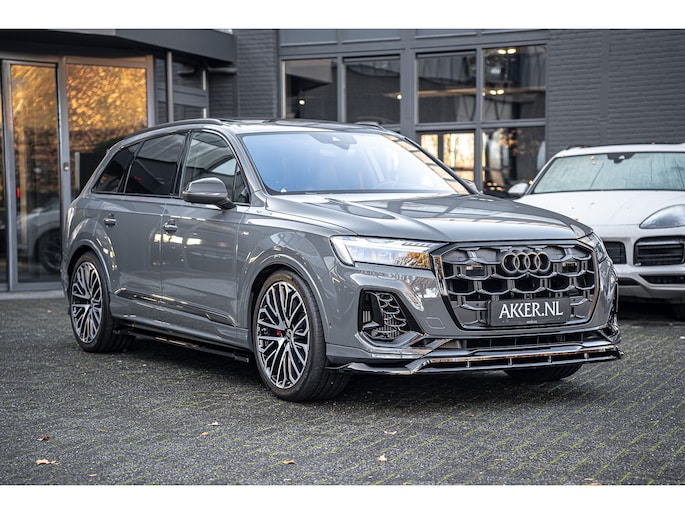 Een uitgebreide beschrijving vindt u op www.akker.nl. Deze Audi Q7 60 TFSIe facelift heeft een verlengde fabrieksgarantie tot 08-10-2030 (of 100.000 km). De huidige nieuwprijs bedraagt €175.145,- Inleg in Carbon Twill, Audi Exclusive lak (Nimbus grijs), 22 Inch lichtmetalen Multispaak S-design wielen (Audi Sport), Stylingpakket Carbon, Hoogglans zwart Aeropakket.