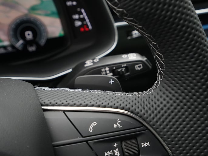 - Driespaaks lederen stuur, multifunctioneel, met stuurpaddels, verwarmbaar (1XP)