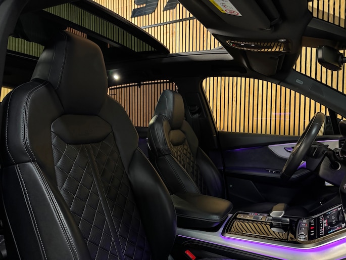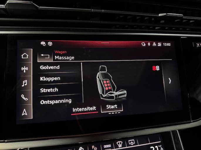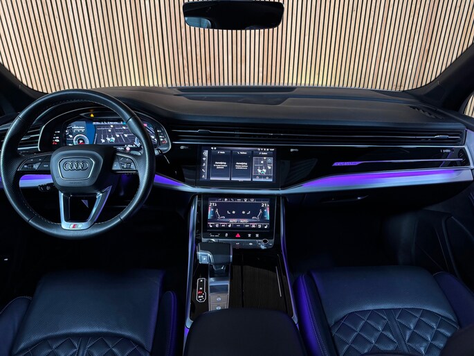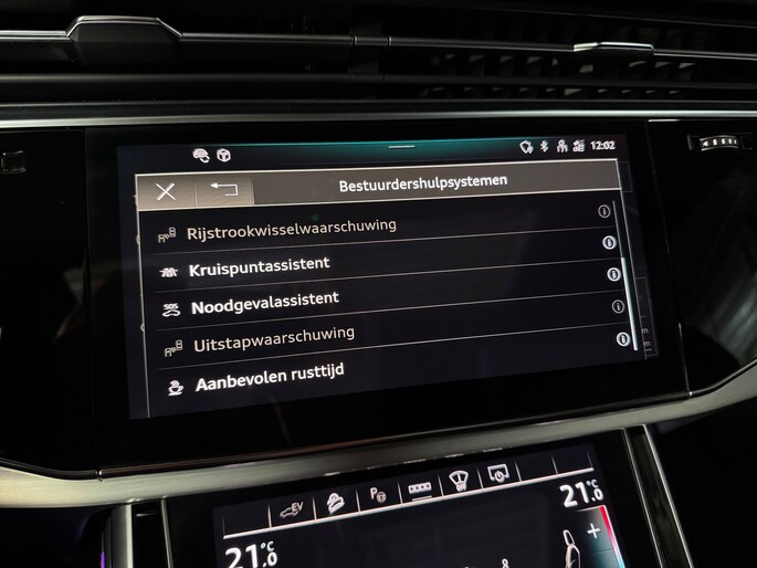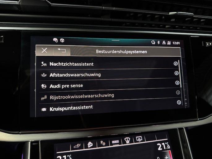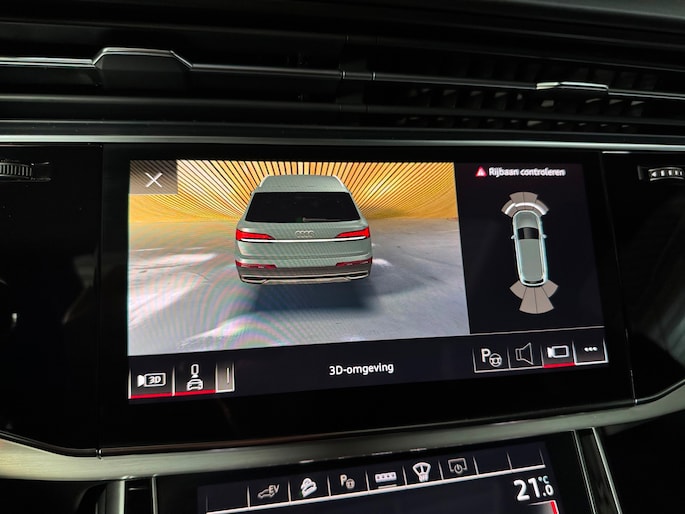 Deze schitterende uitvoering is onder andere voorzien van: panoramadak, luchtvering, trekhaak, Bang & Olufsen Premium 3D, ambienteverlichtingspakket Plus, head-up display, 360° camera, Matrix-LED-koplampen met laserverlichting, LED-achterlichten (per) met dynamische lichtanimatie en dynamisch knipperlicht, koplampsproeiers, S sportstoelen Plus, voorstoelen elektrisch verstelbaar met memoryfunctie, elektrisch verstelbare lendensteunen vóór, Valcona leder met ruitstiksel, stoelventilatie en massagefunctie vóór, stoelverwarming vóór en achter, binnenspiegel met dimautomaat, bedieningselementen in glasoptiek incl. uitgebreide aluminium-look, Virtual Cockpit, LED-instaplampen met projectiefunctie, verlichte instaplijsten met aluminiuminzetstuk en handtekening, Multimedia-interface MMI Navigation Plus met MMI Touch, digitale radio-ontvangst DAB, Audi Pre Sense Front, Hold Assist, verkeersbordenherkenning, rijassistent-systeem snelheidslimietindicator, frontcamera, elektronische wegrijblokkering, achterbank (2e zitrij) verschuifbaar Plus, adaptieve en verwarmde ruitenwissers, Audi Music Interface op de achterbank, Audi Smartphone Interface (Apple CarPlay/Android Auto), elektrisch bedienbare bagage-/laadruimteafdekking, privacybeglazing achter, Bluetooth-handsfree-installatie met spraakherkenning, buitenspiegels elektrisch verstelbaar, verwarmbaar en inklapbaar met dimautomaat en memory, buitenspiegel met stoeprandfunctie, keyless entry en keyless go, diefstalalarmsysteem met interieur- en sleepbeveiliging, dubbele zonnekleppen (verschuifbaar en uittrekbaar), interieurinrichting met lederen interieurelementen, interieurvoorverwarming, ionisator voor luchtreiniging (Air Quality-systeem), lichtmetalen velgen 9,5x21 (5-dubbelspaaks V-design, contrastgrijs, gedeeltelijk gepolijst), Optiekpakket Zwart Plus, Adaptive Rijassistent, kruisingassistent, nachtzichtassistent, parkeerstuurassistent, softclose portieren, sperdifferentieel, verwarmbaar multifunctioneel lederen 3-spaaks stuurwiel Plus, elektrisch verstelbare stuurkolom, voetgangersbeschermingssysteem, zonnescherm voor achterruit en zijruiten.