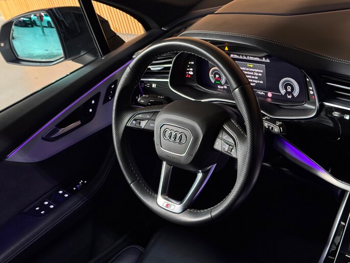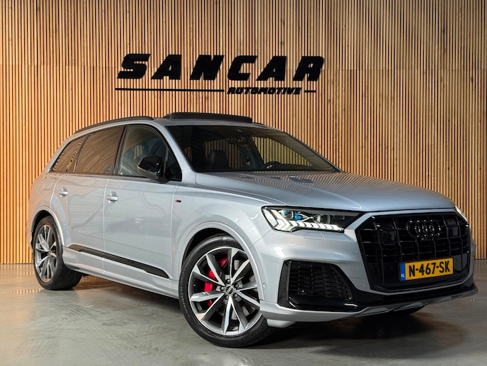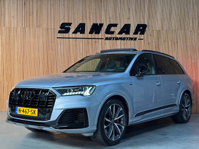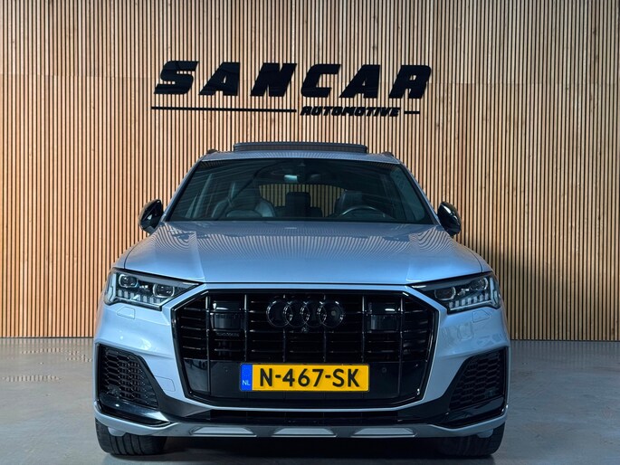 Prachtige Audi Q7 S-Line Competition van februari 2021, uitgevoerd in het elegante Florett Silver Metallic met zwarte accenten. De wagen heeft 128.xxx km op de teller, is volledig onderhouden en kreeg recent nog een grote onderhoudsbeurt.
