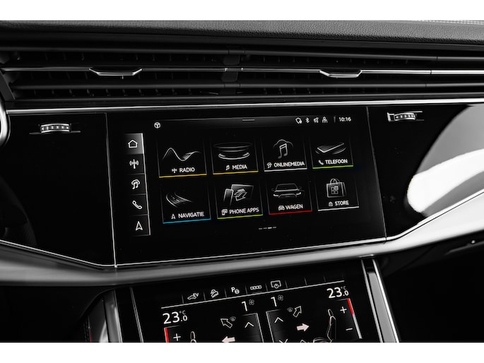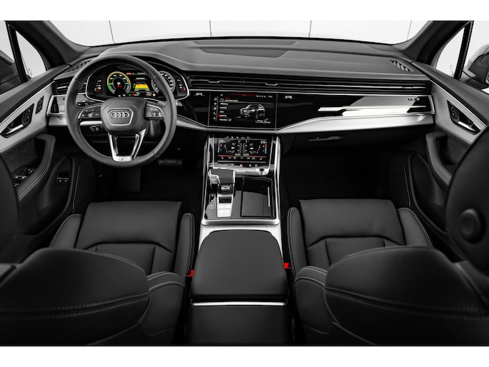 Met z'n extra elektromotor geeft de hybride Audi Q7 een heel nieuwe dimensie aan het rijden. S-Line styling geeft deze auto een extra dynamische uitstraling. We hebben het hier over een nieuwe auto, hij is nu direct leverbaar. Een tweecilinder motor en een automatische transmissie zorgen voor de uitstekende prestaties van deze auto. Die stevige wegligging? Dat heeft te maken met de luchtvering. Altijd de juiste druk, dus constante hoogte en geen last van hobbels. U past de stoelen moeiteloos aan, ze zijn elektrisch in te stellen en hebben bovendien een geheugen. Met een druk op de knop gaat de elektrische achterklep open. Het panoramadak zorgt voor zicht, licht en een enorm ruimtelijk gevoel. Bij de uitrusting van deze Audi horen onder meer LED koplampen, warmtewerend glas, zwarte hemelbekleding, dakspoiler, led-achterlichten en verwarmde ruitensproeiers. Met adaptive cruise control houdt deze auto automatisch afstand tot uw voorligger. Hoeveel gigabytes aan muziek wilt u meenemen? Met één stick in de usb-aansluiting kunt u uren en uren vooruit. Met automatische airconditioning hoeft u alleen de gewenste temperatuur in te stellen. Het systeem doet de rest. De regensensor reageert op de neerslag die op de voorruit belandt. Van een paar spatjes tot een hoosbui: de ruitenwissers weten wat ze te doen staat. Ook is de Audi uitgerust met: DAB+ radio, automatisch dimmende binnenspiegel, isofix-aansluiting, centrale portiervergrendeling, bagage afdekhoes en in hoogte en diepte verstelbaar stuur. De nieuwste veiligheidssystemen komen in deze Audi Q7 samen. Ook helpen het hill start assist en bandenspanningcontrolesysteem, uw rit tot een veilige rit te maken. Vanzelfsprekend leveren wij deze nieuwe auto met volledige fabrieksgarantie. We maken graag een afspraak met u om deze Q7 bij ons te komen bekijken.