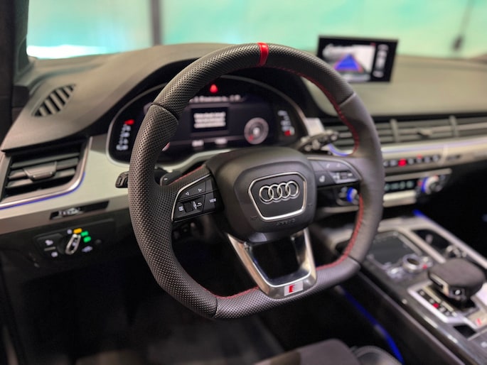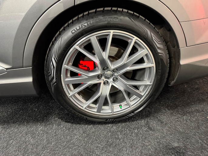 Het sportieve karakter van deze Q7 wordt extra benadrukt door de S Line uitvoering, de prachtige 21 inch Audi Sport velgen en de rode remklauwen, die samen zorgen voor een krachtige en exclusieve uitstraling.
