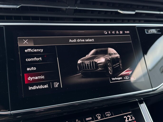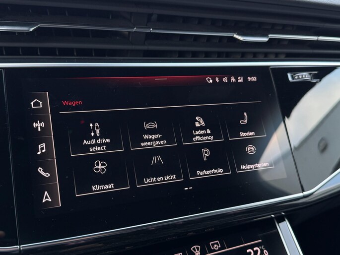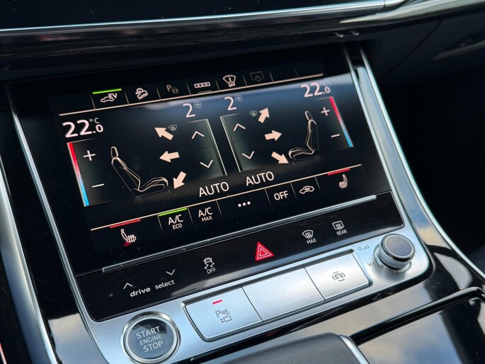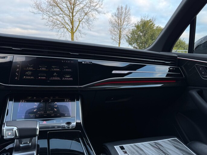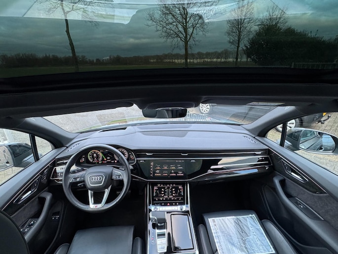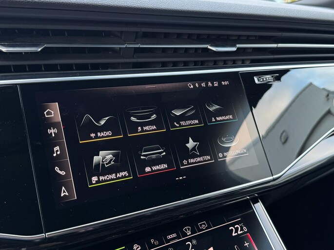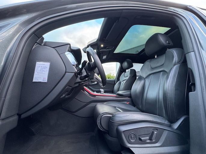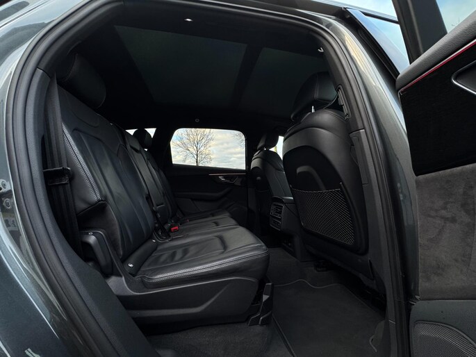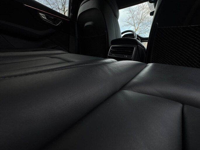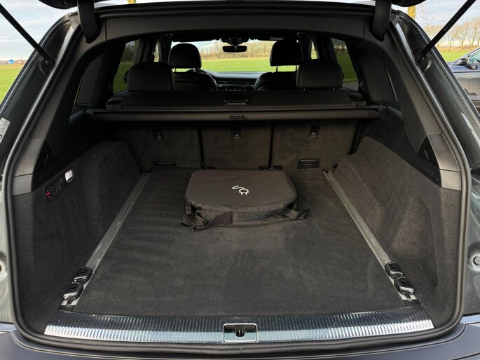 Achterbank Plus, 3-zone climate control, stoelverwarming voor en achter, keyless entry & start, draadloze telefoonlader, ambient lighting, privacy glass, zwarte dakrails en spiegelkappen, elektrisch bedienbare ramen en portieren, interieurvoorverwarming via Audi App, trekhaak elektrisch inklapbaar en nog veel meer.