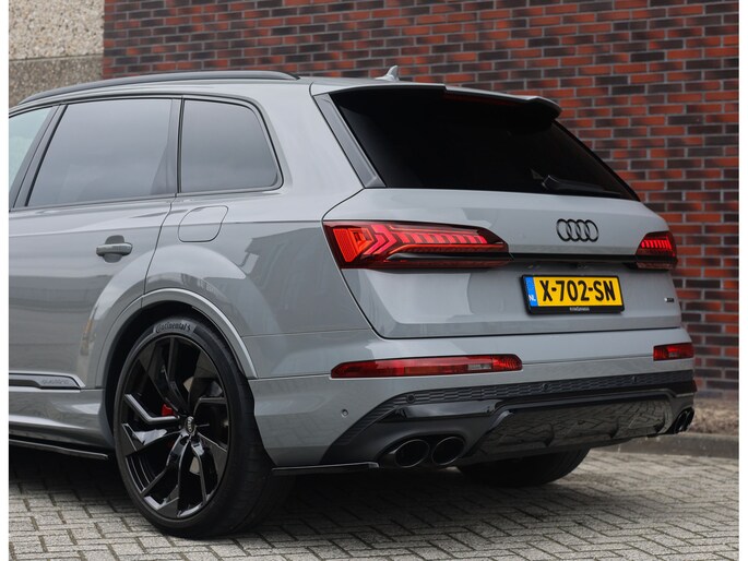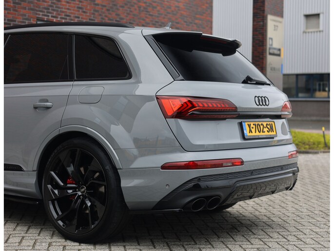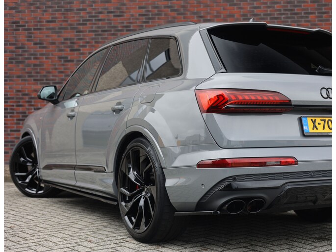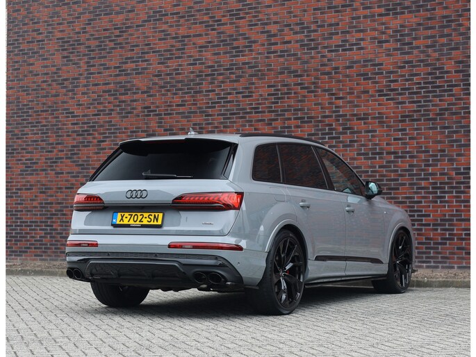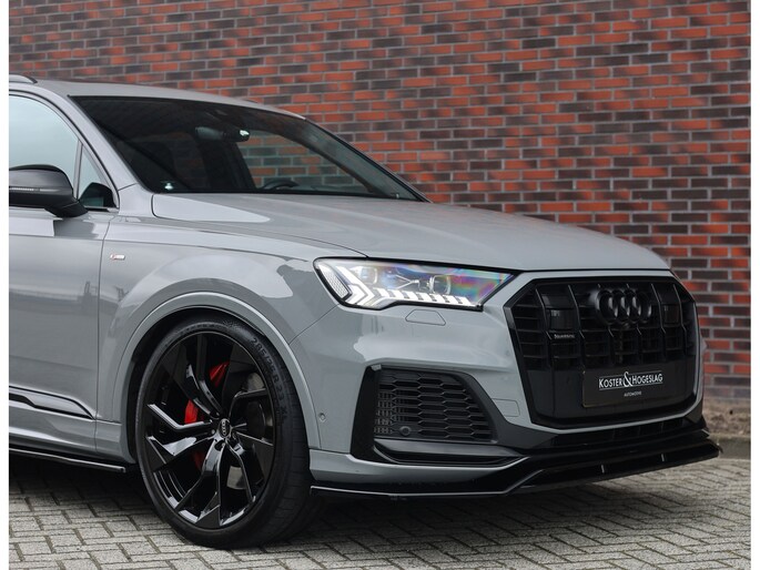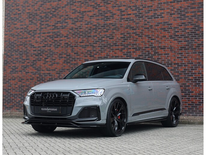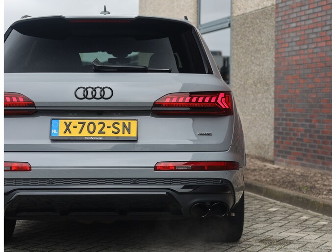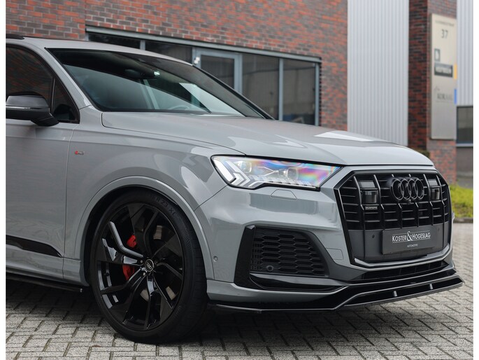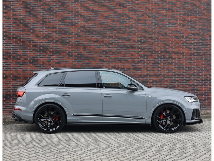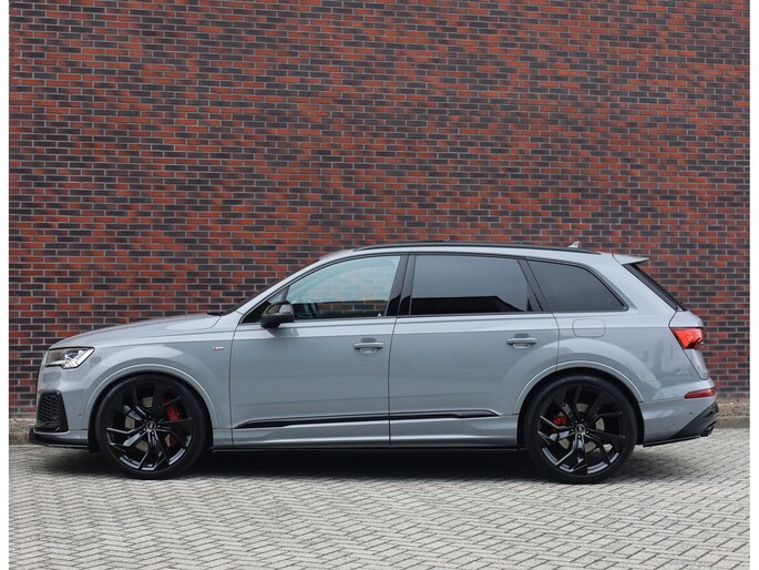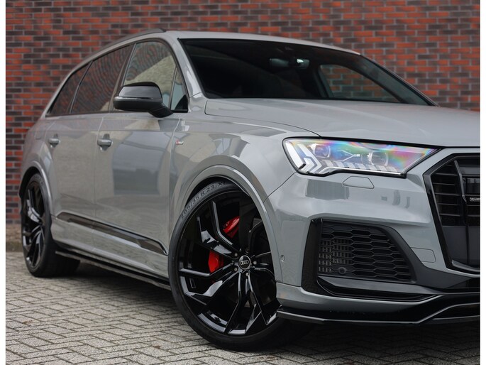 In het zeldzame Nardo Grey komt deze Audi Q7 60 TFSIe direct krachtig en zelfverzekerd over. De S line uitvoering en het Competition Plus pakket geven hem die uitgesproken sportieve uitstraling, extra benadrukt door de S line bumpers, zwarte accenten en de brute Audi Sport 22-inch wielen in Anthracite zwart. Om hem nóg sportiever te laten ogen is deze Audi voorzien van een volledige Maxton bodykit.
