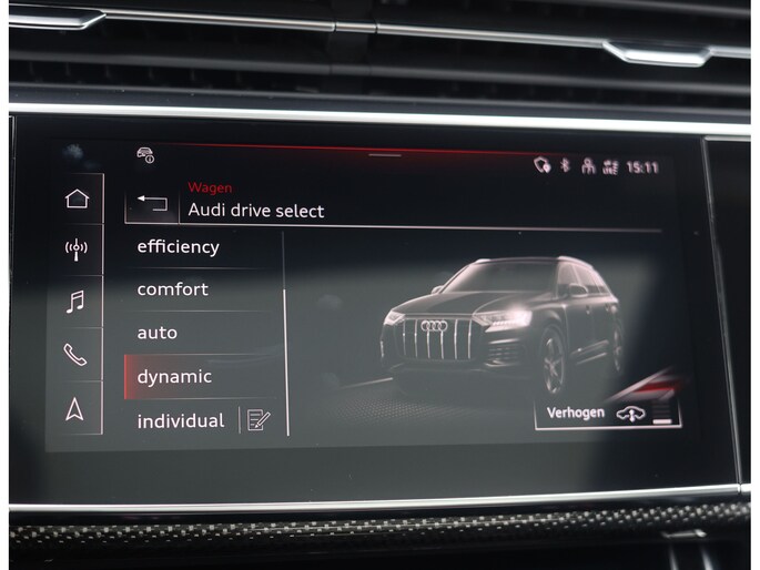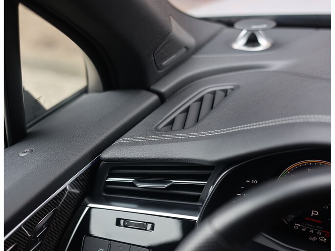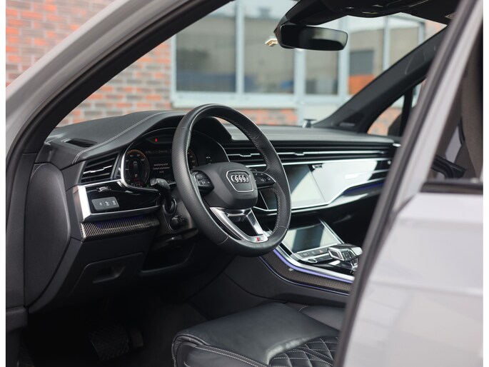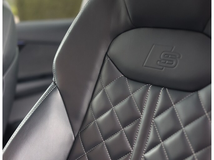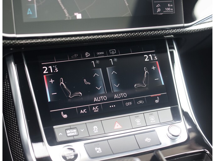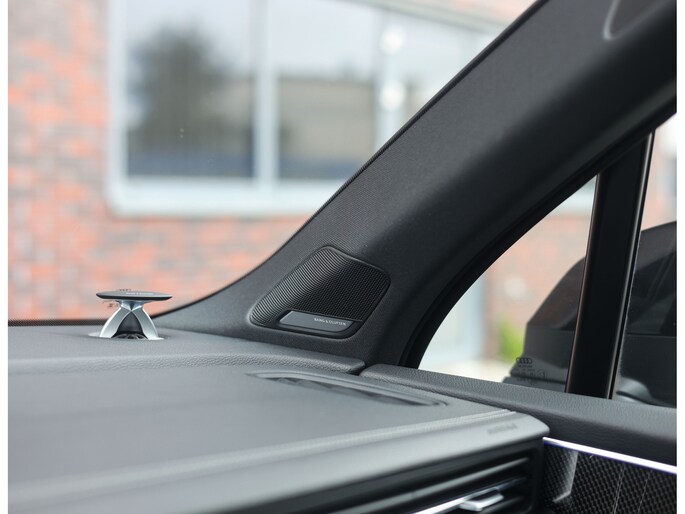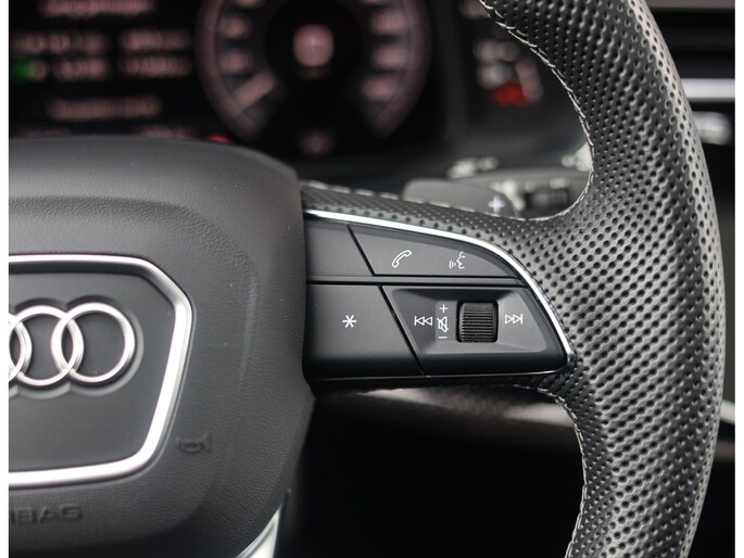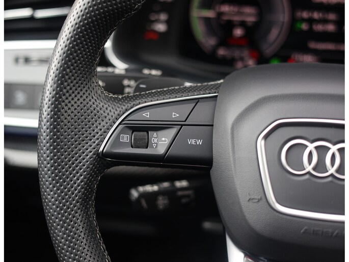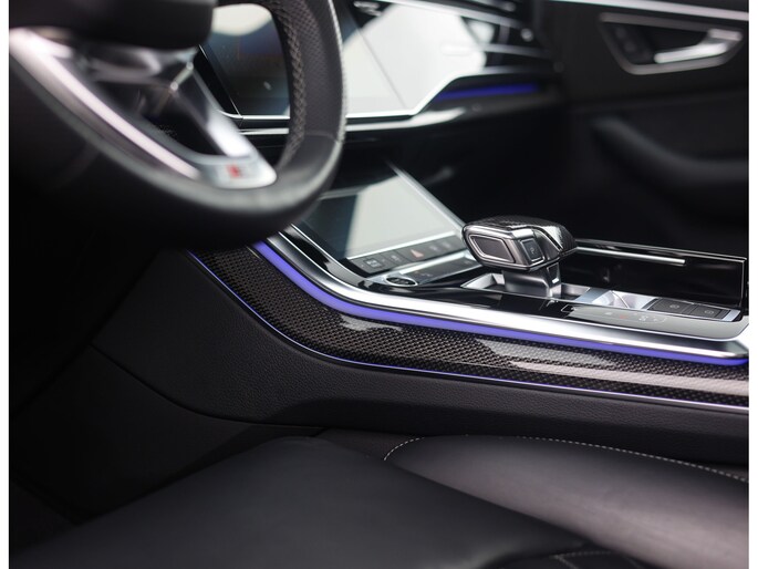 Binnenin zorgen de Valcona lederen sportstoelen met diamantstiksel, de zwarte hemelbekleding en de Carbon Vector inlays voor een interieur die u normaal alleen in Audi Sport modellen vindt. Het panoramadak geeft het interieur een open uitstraling en de sfeerverlichting zorgt meteen voor een warme, rustige sfeer. Het verwarmde lederen sportstuur ligt fijn in de hand en geeft een subtiele sportieve beleving zonder op te dringen. In combinatie met het rijke, heldere geluid van het Bang & Olufsen Sound System ontstaat een ontspannen sfeer die perfect past bij lange ritten én dagelijks gebruik.