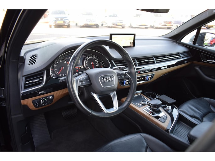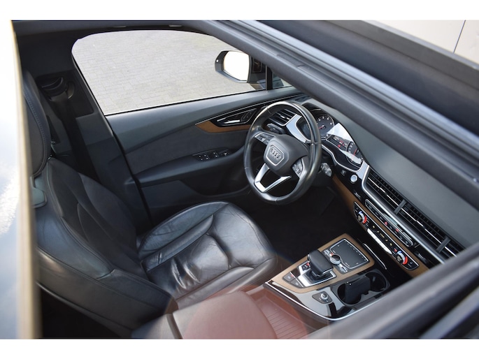 Of u nu stadsritten maakt of langdurig op snelwegen bent, het rijden met de Audi Q7 is steeds een genoegen. Het onderstel biedt comfort en sportiviteit, het interieur is ruim en weldadig en deze auto heeft alle systemen aan boord om uw ritten zo veilig mogelijk te maken. Met zijn benzinemotor en automatische transmissie is dit een prima auto voor nog vele kilometers. Aan gemak én ruimte is uitstekend gedacht: een elektrisch bediend glazen panorama dak en een elektrisch bedienbare achterklep. En dan krijgt u het mooie lederen interieur er ook nog eens bij! Neem plaats op de comfortabele stoelen. Dankzij de elektrische bediening en het geheugen is het eenvoudig om hierin de beste zitpositie te vinden. Tot de voorzieningen van deze auto behoren 19 inch lichtmetalen velgen, LED koplampen, warmtewerend glas, dakspoiler, in delen neerklapbare achterbank en LED-achterlichten.