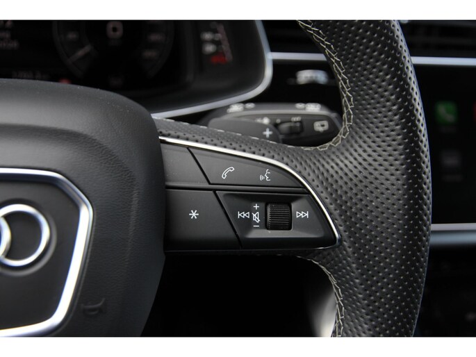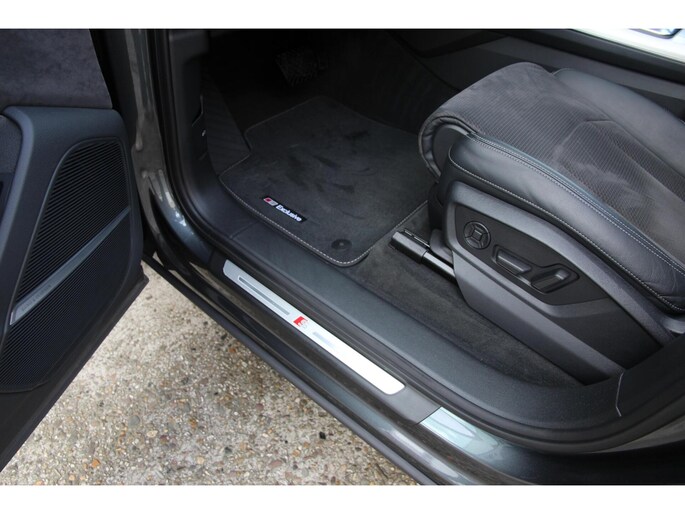 Sportief én chique De kleur 'Daytona Grau Metallic' blijft een van de mooiste lakken van Audi, zeker in combinatie met het zwart optiek pakket. De 22 inch originele Audi Sport velgen vullen de wielkasten perfect en geven de auto een krachtige uitstraling. Binnenin trekt die lijn zich door met de bekende S-line sportstoelen en de zwarte hemelbekleding; een interieur dat zowel luxe als sportiviteit uitademt.