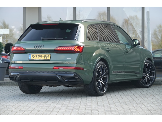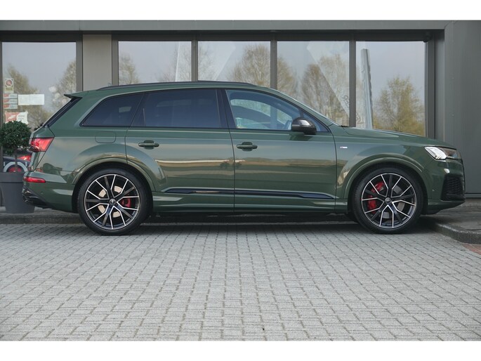 Met een auto als deze Audi Q7 komt u absoluut goed voor de dag. Deze auto uit 2023 heeft 79498 kilometer gereden. De begrippen exclusief en sportief zijn allebei van toepassing op de markante S-Line styling. Deze Audi Q7 heeft een hybride motor, dus een combi van brandstof en elektrisch. Een slim en milieuvriendelijk systeem dat ook nog eens lekker kostenbesparend is. De luchtvering zorgt voor comfort en een ultieme wegligging. Het met leer beklede interieur is comfortabel en stijlvol. Neem plaats op de comfortabele stoelen. Dankzij de elektrische bediening en het geheugen is het eenvoudig om hierin de beste zitpositie te vinden. Het elektrisch bediende panoramadak zorgt voor maximale lichtinval en frisse lucht in het interieur. De elektrisch bedienbare achterklep opent met een druk op de knop. Gewoon, omdat het kan. Deze Audi Q7 heeft zelfs een verwarmde achterbank. Verder is de Audi uitgerust met: 22 inch lichtmetalen velgen, LED-koplampen, warmtewerend glas, trailer assistent, dakspoiler en LED-achterlichten.