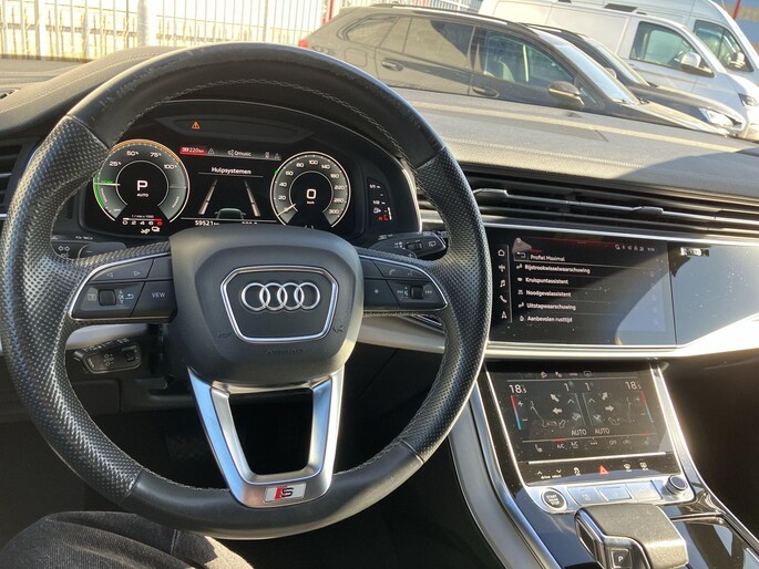 De vooruitstrevende hybride aandrijflijn van deze auto geeft vandaag al antwoord op de belangrijke vragen van morgen. Deze Audi Q7 is van het bouwjaar 2022, hij heeft 59520 kilometer gelopen. Het sportieve uiterlijk is meegeleverd in de vorm van de S line exterieur styling. Zeer laag in brandstofverbruik, hoog in prestaties: deze hybride auto combineert een verbrandingsmotor en een elektromotor. Basisuitvoering? Niks daarvan! Deze komt met lederen interieur, een elektrisch bediende glazen panorama dak en een elektrisch bedienbare achterklep. Tijdens de koude maanden is stoelverwarming een voorziening die u niet wilt missen. Luchtgeveerde wielophanging zorgt voor topklasse comfort op alle soorten wegdek. De koplampen met matrix LED-verlichting geven daglichtkwaliteit zonder tegenliggers te hinderen. Ook 21 inch lichtmetalen velgen, warmtewerend glas, instelbaar onderstel, trailer assistent, dakspoiler en LED-achterlichten horen tot de voorzieningen op deze auto.