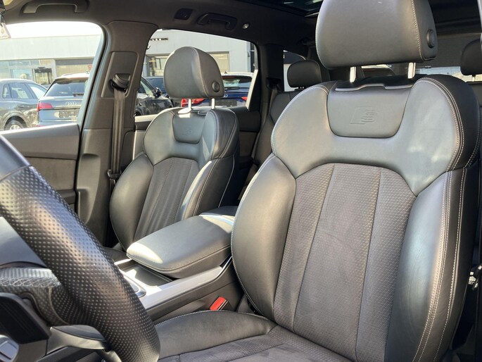 De nieuwste veiligheidssystemen komen in deze Audi Q7 samen. Tijdens de rit hebt u altijd een bijrijder, want de verkeersbord-detectie leest de borden langs de weg en projecteert ze voor u op het instrumentarium. Mooi binnen de lijnen van de rijstrook blijven? Het Lane-keeping systeem helpt altijd een handje. U bent mede dankzij dodehoekdetectie, hill hold functie, frontale botsbescherming en bandenspanningcontrolesysteem steeds veilig onderweg.
