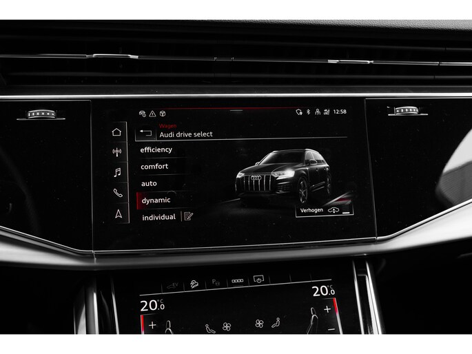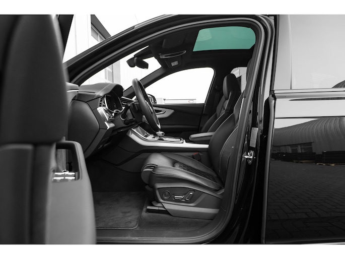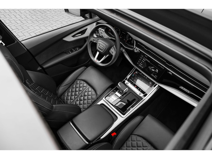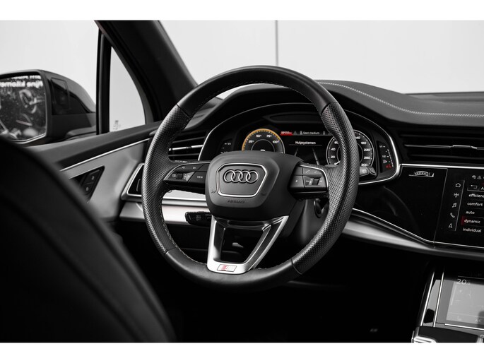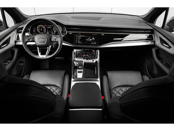 Deze Q7 is uitgevoerd als Pro Line S Competition, dus compleet met zwart optiekpakket, 22 inch Audi velgen, en Valcona lederen bekleding. Een echte blikvanger, maar ook een stille krachtpatser dankzij de slimme PHEV-aandrijflijn.