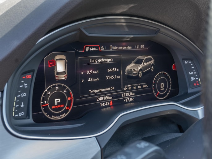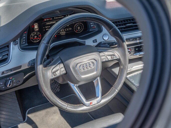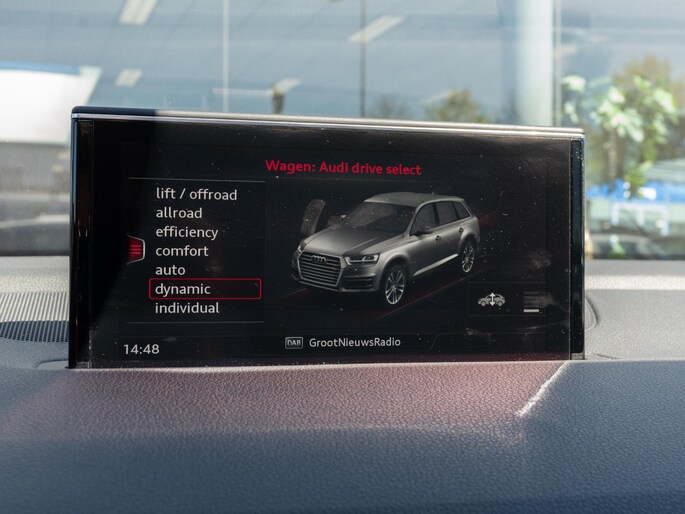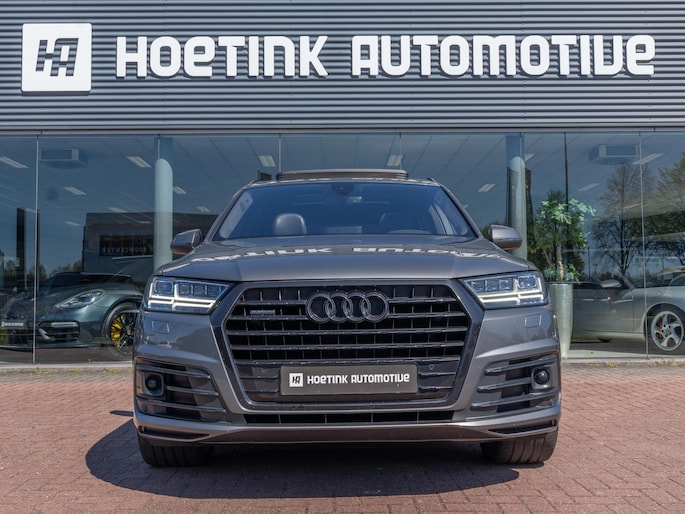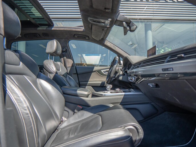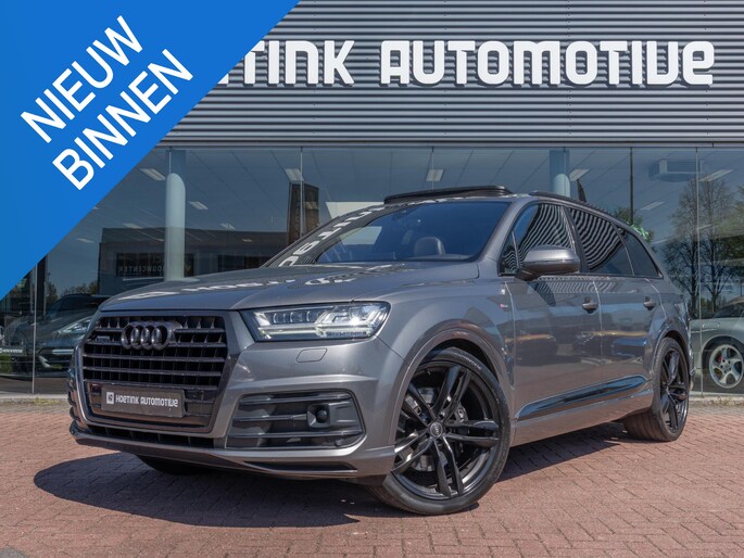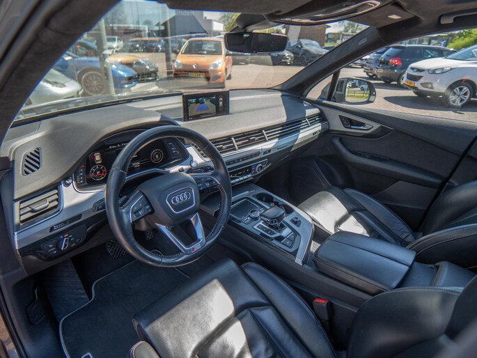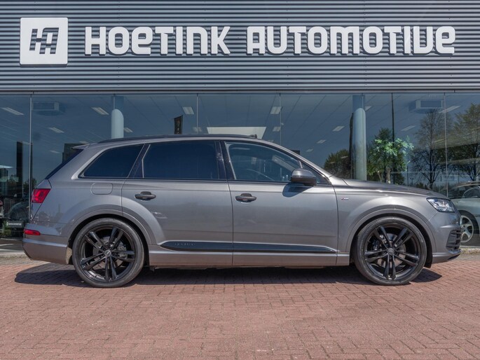 Mooie Audi Q7 uitgevoerd in het stijlvolle ‘Grafietgrijs Metallic’. Een schitterende en zeer complete configuratie en werkelijk bomvol opties, waaronder: Matrix-LED koplampen, panoramisch dak, elektrische trekhaak en Bose sound system.