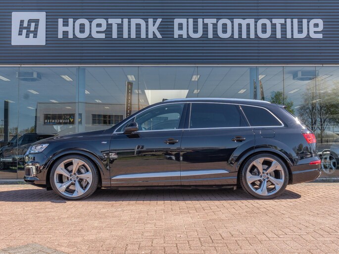 Mooie Audi Q7 uitgevoerd in het stijlvolle ‘Orkazwart’. Een schitterende en complete configuratie met de belangrijkste opties zoals: panoramisch dak, elektrische trekhaak, Bose sound system en luchtvering.