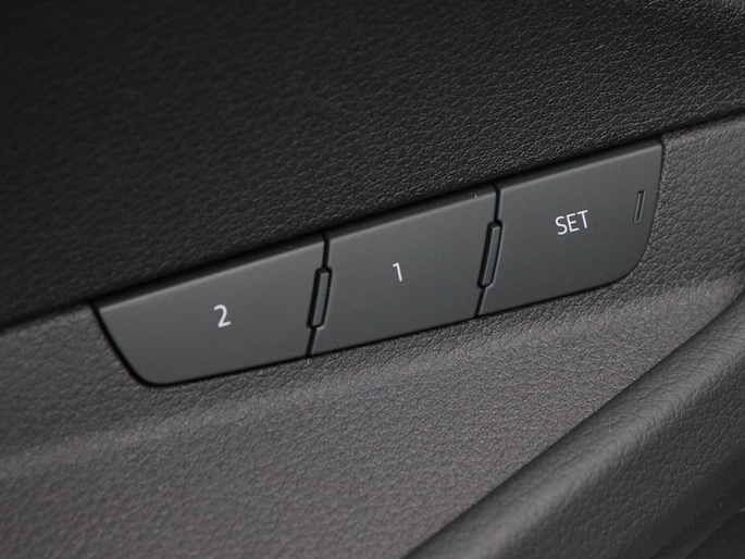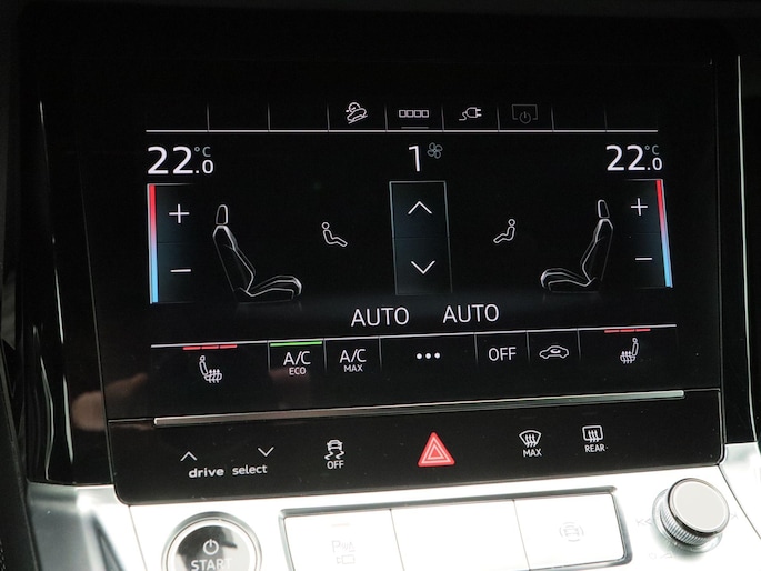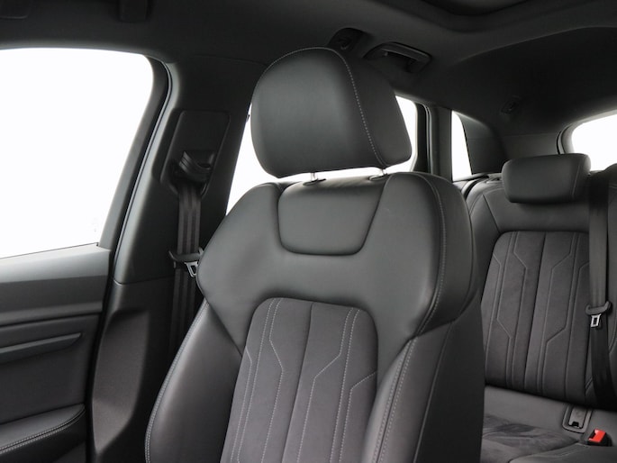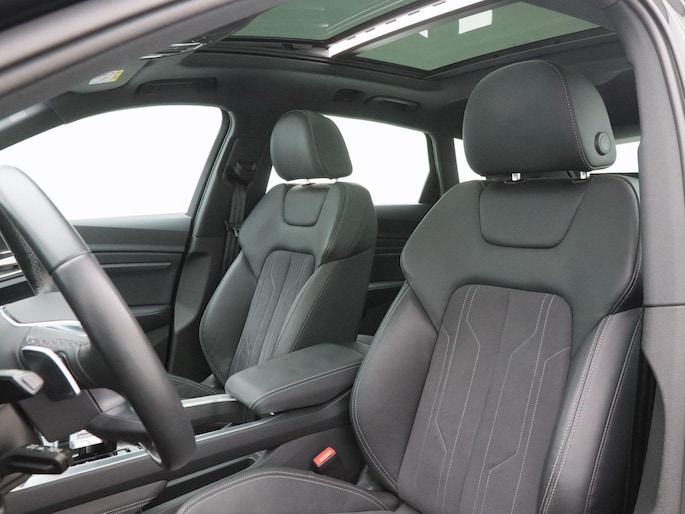 Binnenin is het pure Audi-luxe. De stof-lederen bekleding, elektrisch verstelbare en verwarmbare stoelen, het digitale dashboard, het lederen sportstuur en de elektronische klimaatregeling (ECC) creëren een ambiance van comfort en vakmanschap. De keyless entry & start, navigatie met Apple CarPlay, achteruitrijcamera, parkeersensoren voor en achter, adaptieve cruise control en elektrisch bedienbare achterklep maken het rijden niet alleen moeiteloos, maar ook ontspannen en intuïtief.