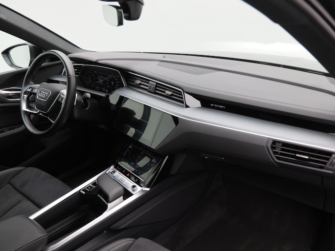 Qua design is deze Q8 e-tron een lust voor het oog. De LED-verlichting, 21 inch lichtmetalen velgen, privacy glass en het elektrisch bedienbare panoramadak geven de auto een imposante en moderne uitstraling. De strakke lijnen, brede wielkasten en subtiele accenten benadrukken het sportieve, maar ingetogen karakter van deze elektrische SUV.