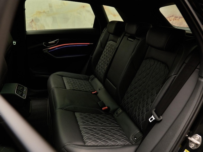 Het interieur van deze Audi Q8 e-tron is ontworpen voor maximaal comfort en een premium beleving. De sportstoelen plus voorin (Q4Q) zijn elektrisch verstelbaar met geheugenfunctie voor de bestuurdersstoel (PV3 / 3L4) en uitgerust met stoelverwarming vóór (4A3) en 4-voudig elektrisch verstelbare lendensteunen (7P1).