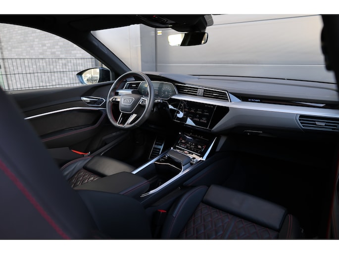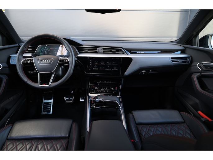 Audi heeft de auto opnieuw uitgevonden. De volledig elektrische Audi Q8 e-tron is duurzaam, maar biedt tegelijk veel rijcomfort en geweldige prestaties. Dit dealeronderhouden exemplaar is van het bouwjaar 2024, er staat 26870 kilometer op de teller. Nooit meer naar de pomp! De elektromotor opladen en rijden maar! Het S-Line styling pakket maakt direct duidelijk waar deze Audi voor staat: onversneden sportiviteit en rijdynamiek. Deze dealeronderhouden auto is van de eerste eigenaar. Een krachtige motor geeft deze auto zijn sportieve prestaties. We nemen u in gedachten even mee. Stop uw bagage moeiteloos achterin dankzij de elektrisch bediende achterklep, neem plaats achter het stuur en zie meteen het luxe lederen interieur. Even het elektrisch bediende glazen panorama dak open en rijden maar! Winterse omstandigheden? Geniet dan van het comfort van de stoelverwarming! De kwaliteit van de matrix LED-verlichting geeft het gevoel dat u bij daglicht rijdt. Ook 20 inch lichtmetalen velgen, sportonderstel, adaptief dempingsysteem, warmtewerend glas, zwarte hemelbekleding en in delen neerklapbare achterbank horen tot de voorzieningen op deze auto.