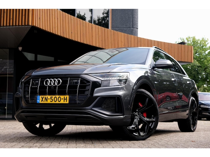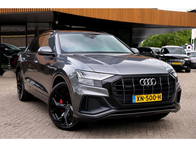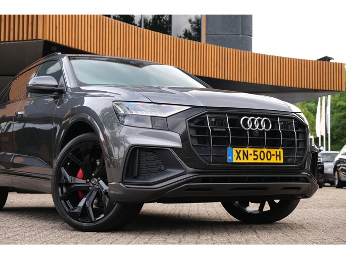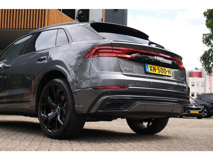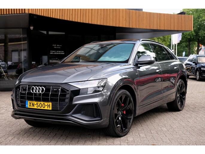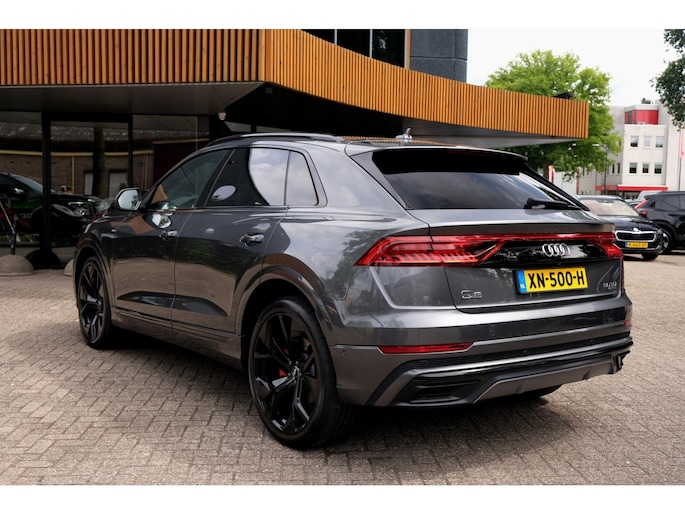 Nette, goed onderhouden en zeer rijk uitgeruste Audi Q8 - 50 TDI quattro Pro Line S uit 2018. Deze degelijke V6 50TDI is o.a. voorzien van: achterbank verstelbaar, voorstoelen + achterbank verwarmd, Bang & Olufsen Premium sound system, dodehoek detectie, elektrisch glazen panoramadak, massagestoelen, stoelventilatie, head-up display, rondomzichtcamera, HD Matrix LED-koplampen, verwarmde voorruit, RS sportstoelen, luchtvering, adaptieve cruise control, lane assist en smartphone integratie. Uitgevoerd in grijs metallic met zwart lederen sport-comfortinterieur.