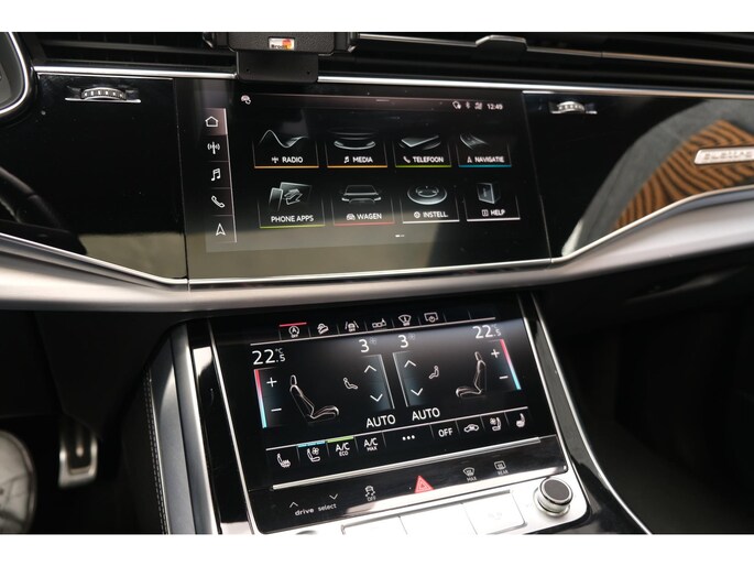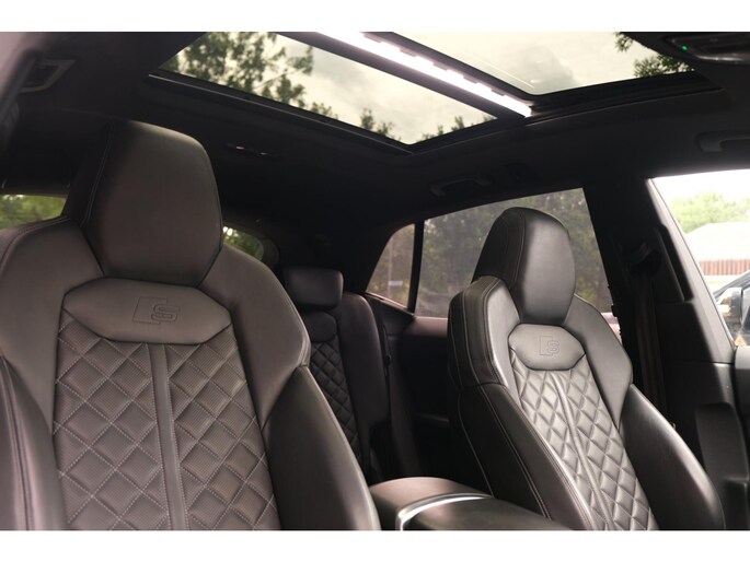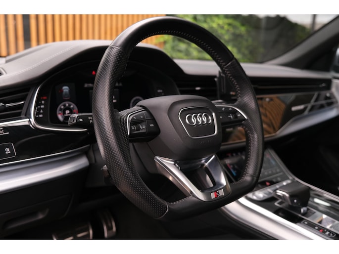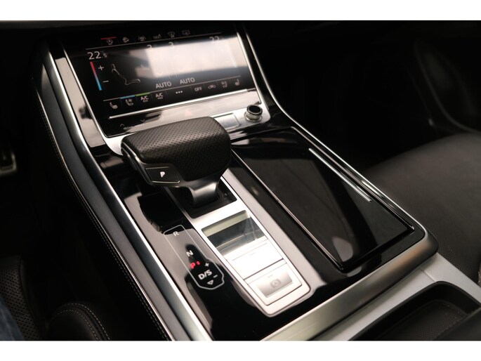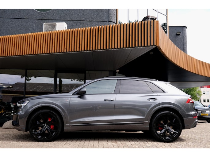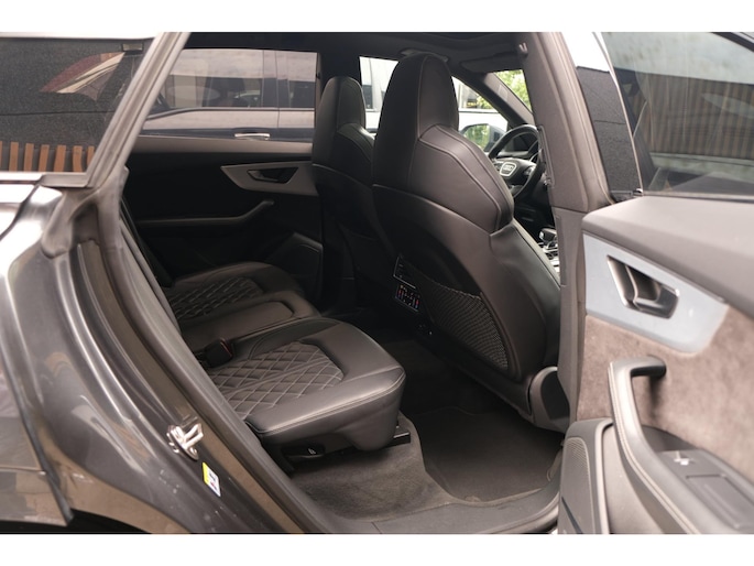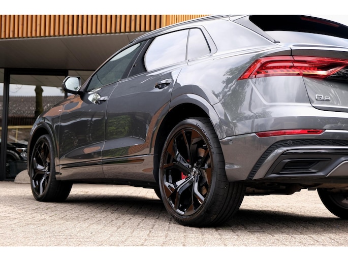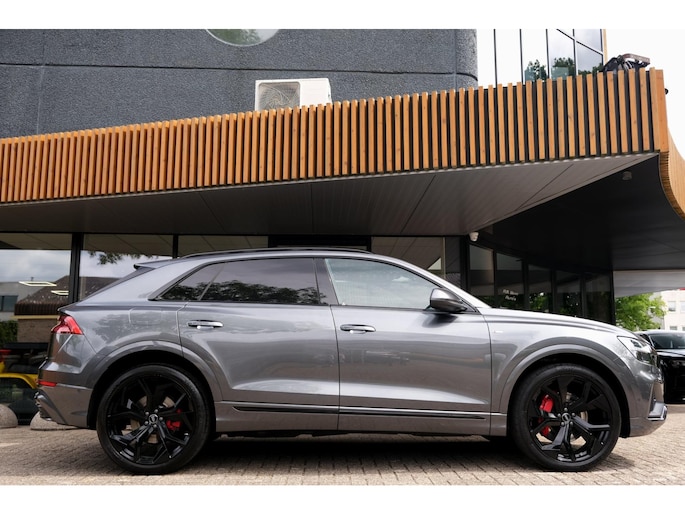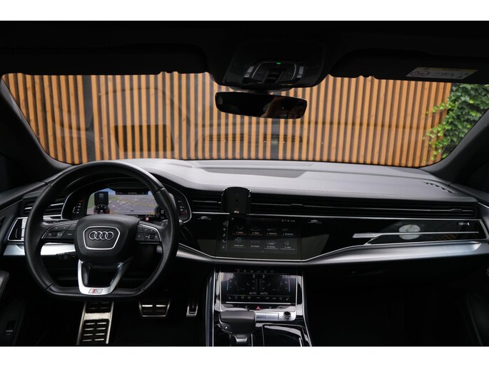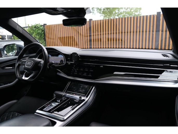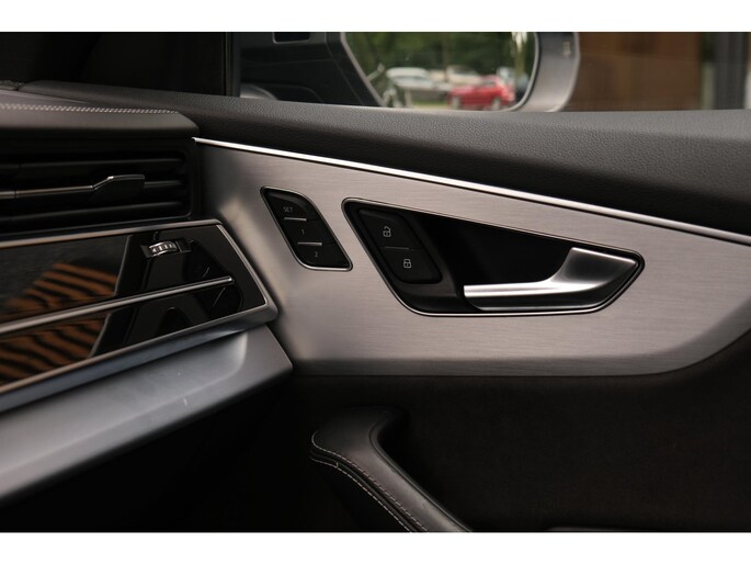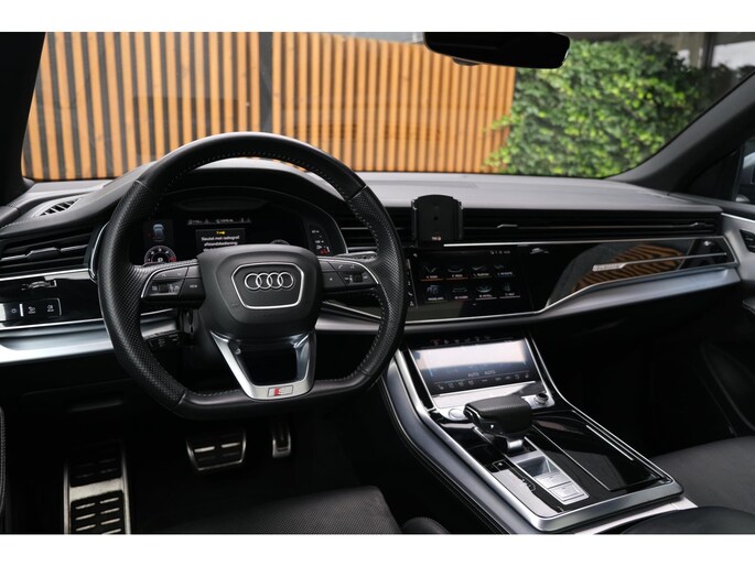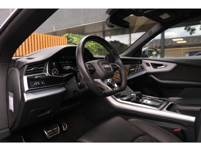 Het exterieur wordt geaccentueerd door het S-Line pakket en stoere 23 inch lichtmetalen velgen, wat het sportieve karakter van deze SUV onderstreept. Ondanks zijn robuuste bouw met een gewicht van 2130 kg en een wielbasis van 299 cm, voelt de Q8 wendbaar en lichtvoetig aan, mede dankzij de verfijnde ondersteltechniek en intelligente aandrijving.