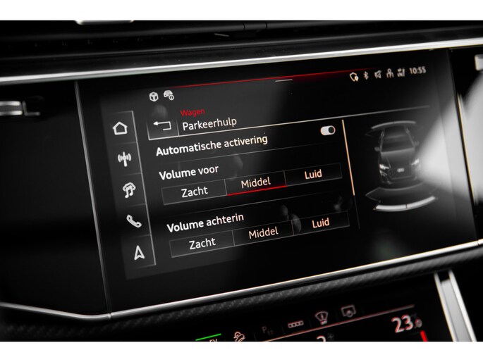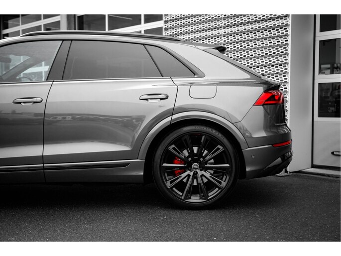 Superieure techniek, innovatie van de bovenste plank en ongekende topprestaties: dat is wat u van een Duitse auto mag verwachten. Het S-Line styling pakket maakt direct duidelijk waar deze Audi voor staat: onversneden sportiviteit en rijdynamiek. Deze hybride auto heeft een combinatie van een verbrandingsmotor en een elektromotor. Vierwielaandrijving verdeelt de aandrijfkracht over de wielen en zorgt voor meer grip. De hoogwaardige, lederen bekleding benadrukt de kwaliteit van deze Audi. U past de stoelen moeiteloos aan, ze zijn elektrisch in te stellen en hebben bovendien een geheugen. Life is easy! In ieder geval met dit elektrisch bediende glazen panoramadak. De elektrische achterklep opent met een druk op de knop, zodat u gemakkelijk toegang heeft tot de bagageruimte. Verblinding van tegenliggers is er niet meer bij, dankzij de koplampen met matrix LED-verlichting. En toch de kwaliteit van daglicht in het donker! Bij de zeer complete uitrusting van deze auto behoren ook 21 inch lichtmetalen velgen, sportonderstel, adaptief dempingsysteem, warmtewerend glas, dakspoiler en LED-achterlichten. Het digitale dashboard is een perfecte bijrijder. Alles benodigde informatie is permanent zichtbaar of opvraagbaar. Met de 360 graden camera, verzorgd door vier camera's, wordt rijden in drukke steden of het navigeren in nauwe ruimtes een koud kunstje. Adaptive cruise control houdt de ingestelde snelheid vast en houdt afstand tot het voertuig voor u. Deze auto gaat met u in gesprek. Hij vertelt u dankzij remote services alles over de status van diverse onderdelen en laat zich desgevraagd ook activeren. Gewoon via uw smartphone. Het complete geluidsspectrum van de hi-fi krijgt een extra boost door het high performance audiosysteem. Extra opties op deze auto zijn: full map navigatiesysteem, electronic climate control, sportstuur met schakelpaddels, draadloos opladen, DAB ontvangst en regensensor. Deze Audi biedt u niet alleen comfort en rijplezier, maar ook veiligheid. Actieve veiligheidssystemen houden voor u de weg in de gaten en reageren op onvoorziene situaties voordat u dat kunt. De auto is voorzien van head-up display, waarbij alle belangrijke informatie wordt geprojecteerd in uw gezichtsveld. U hoeft uw ogen geen seconde van de weg te halen! Bij de veiligheidssystemen van deze Audi hoort ook de verkeersbord-detectie. Die leest tijdens het rijden als het ware met u mee en attendeert u op de significante verkeersborden langs en boven de weg. Ongemerkt buiten de rijstrook raken? Nee hoor, het Lane-keeping systeem waarschuwt en corrigeert. Met voorzieningen als forward collision warning system, hill hold functie en frontale botsbescherming, bent u altijd veilig onderweg. Als u wilt, kunt u een proefrit maken met deze Audi Q8. Bel of mail ons nu voor een afspraak.