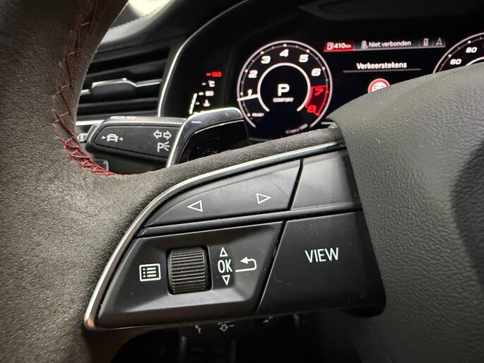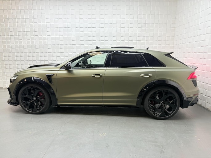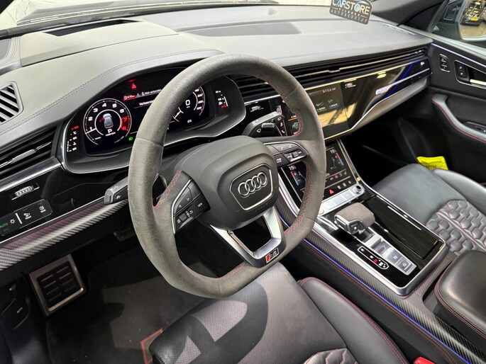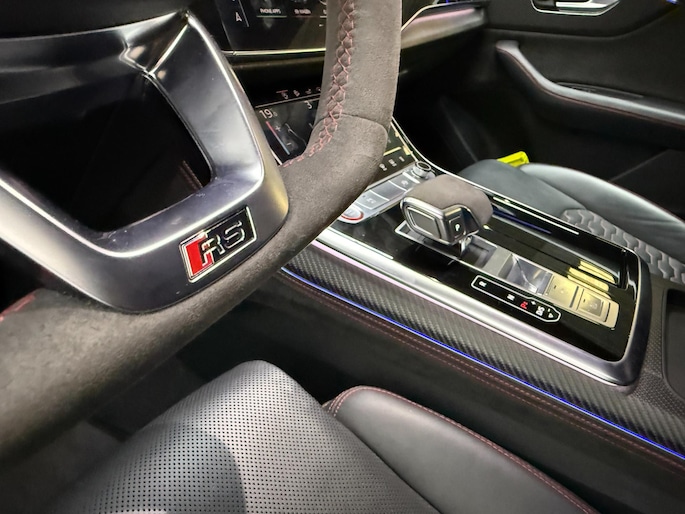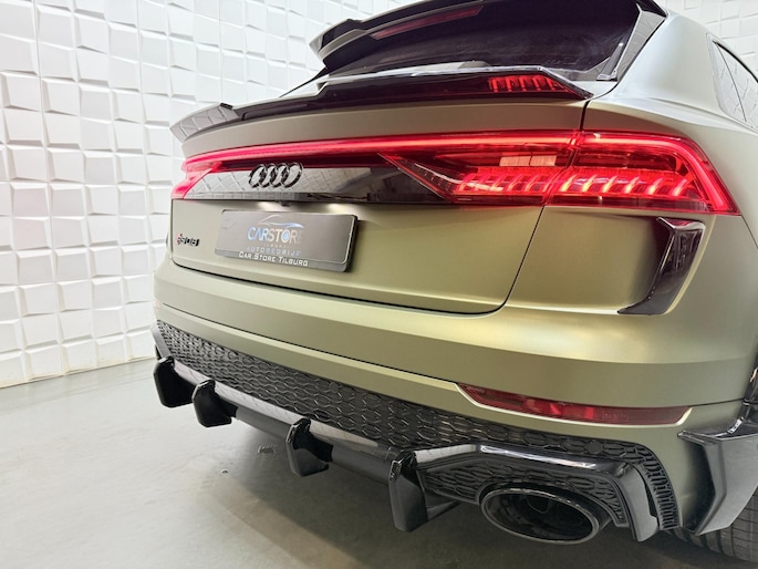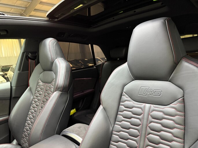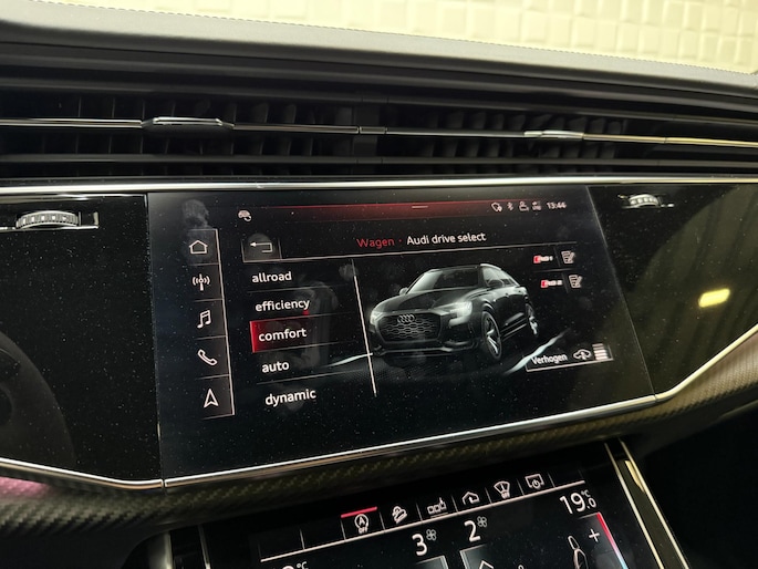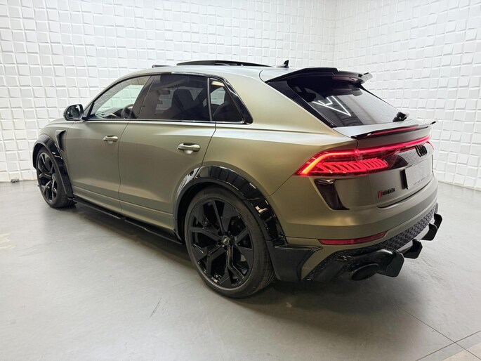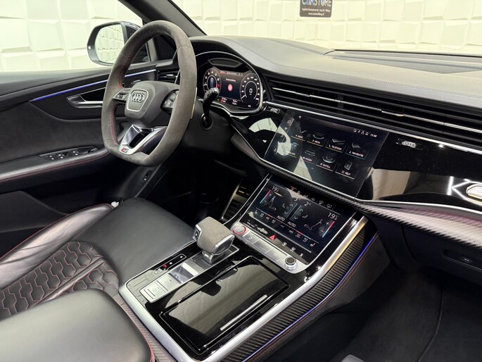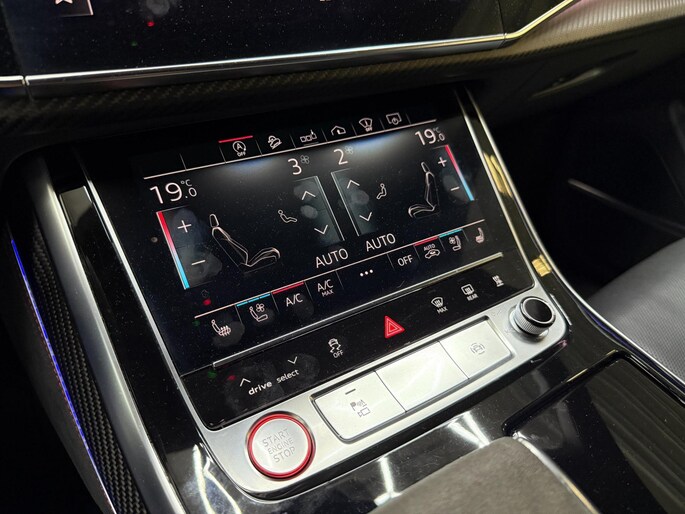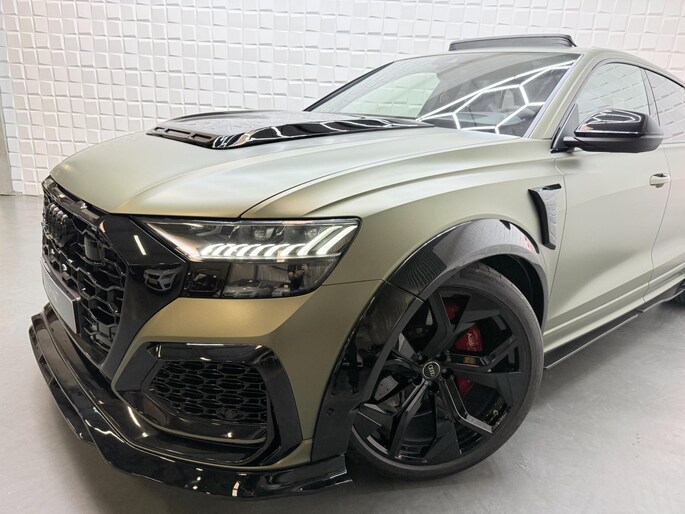 Met zijn compromisloze design, zijn geweldige vermogen en zijn uitgekiende techniek staat deze Audi RSQ8 garant voor sportieve topprestaties. Het sportieve uiterlijk is meegeleverd in de vorm van de S-Line styling. Met een achtcilinder motor en een automatische transmissie beschikt deze Audi over uitstekende prestaties. Ontdek de fantastische prestaties van vierwielaandrijving met deze 4x4! We nemen u in gedachten even mee. Stop uw bagage moeiteloos achterin dankzij de elektrisch bediende achterklep, neem plaats achter het stuur en zie meteen het luxe lederen interieur. Even het elektrisch bediende glazen panorama dak open en rijden maar! Dankzij de elektrische stoelbediening is het gemakkelijk om de optimale zitpositie te vinden. De achterbankverwarming, het verwarmbare stuurwiel en de verwarmbare voorstoelen brengen passagiers en bestuurder snel weer op temperatuur, ongeacht hoe koud het buiten is. Een mooie, constante en solide ligging op de weg: dat is het voordeel van luchtvering. De koplampen met matrix LED-verlichting geven daglichtkwaliteit zonder tegenliggers te hinderen. Natuurlijk behoren 22 inch lichtmetalen velgen, warmtewerend glas, trailer assistent, in delen neerklapbare achterbank, LED-achterlichten en verstelbare lendensteunen ook tot de uitrusting van deze complete auto.