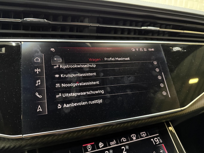 De nieuwste veiligheidssystemen komen in deze Audi RSQ8 samen. Bij de veiligheidssystemen van deze auto hoort ook de verkeersbord-detectie. Die leest tijdens het rijden als het ware met u mee en attendeert u op de significante verkeersborden langs en boven de weg. Mooi binnen de lijnen van de rijstrook blijven? Het Lane-keeping systeem helpt altijd een handje. De actieve dodehoekdetectie minimaliseert het gevaar van ongelukken wanneer u afslaat of inhaalt. U bent mede dankzij head-up display, accident avoidance system, forward collision warning system, hill hold functie, brake assist en vermoeidheidsherkenning steeds veilig onderweg.