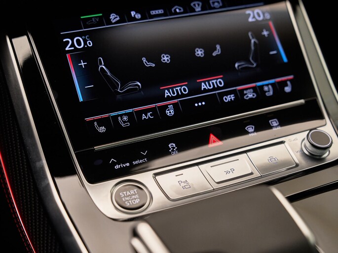De Audi Q8 is uitgerust met geavanceerde technologieën zoals de Head-Up Display (KS1) en het Bang & Olufsen Premium Sound System (9VS), dat zorgt voor een premium geluidservaring. Met het HD Matrix LED-koplampensysteem (PXB) hebt u altijd optimaal zicht, terwijl de Climatronic airconditioning (9AU) zorgt voor een comfortabel binnenklimaat.