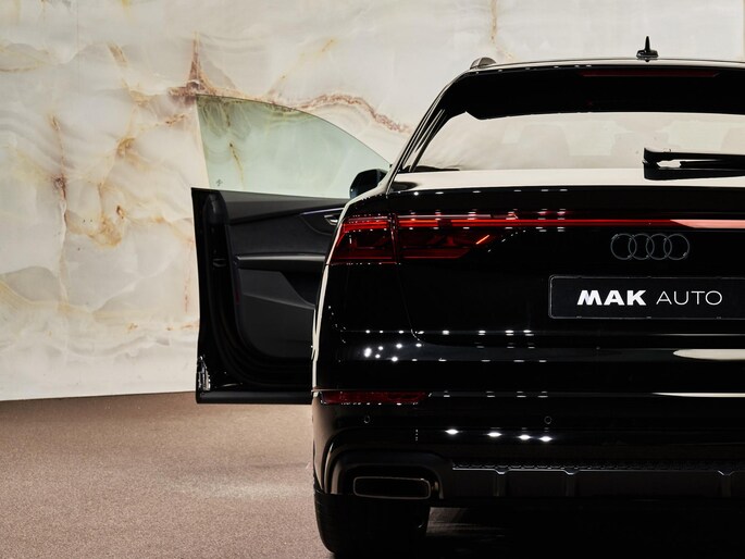 De Audi Q8 biedt futuristische functionaliteiten zoals de HD Matrix LED-koplampen (PXB), adaptieve cruise control (8T5), en de geavanceerde head-up display (KS1). Met de elektrisch verstelbare sportstoelen plus (Q4Q) en het Bang & Olufsen Premium Sound System (9VS) geniet u van comfort en entertainment op topniveau.