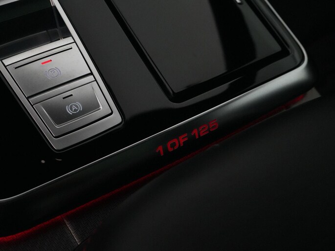 Binnenin is het pure exclusiviteit: alcantara, carbon details, RSQ8 R-logo’s en het kenmerkende “1 of 125” embleem maken duidelijk dat je in iets bijzonders zit.