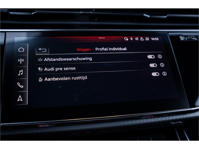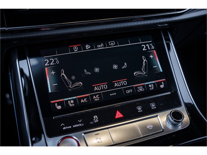 De nieuwste veiligheidssystemen komen in deze Audi RSQ8 samen. Onbedoeld buiten de rijstrook raken wordt voorkomen door het Lane-keeping systeem. Het systeem van forward collision warning, of in gewoon Nederlands 'botswaarschuwing', treedt in werking als de sensor te weinig afstand signaleert met een voor- of tegenligger. U bent mede dankzij dodehoekdetectie, hill hold functie, autonoom remsysteem en bandenspanningcontrolesysteem steeds veilig onderweg.