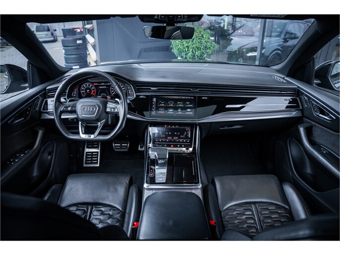 Dankzij hoogwaardige techniek en verschillende veiligheidssystemen, biedt deze Audi RSQ8 u optimale veiligheid en comfort tijdens iedere rit. Exclusiviteit en sportiviteit komen samen in de S-Line styling. De automatische transmissie en de achtcilinder benzinemotor maken het autorijden snel en comfortabel. Het lederen interieur springt meteen in het oog; maar wat dacht u van het ultragemakkelijke elektrisch bediende glazen panorama dak en de elektrisch bedienbare achterklep? Zit u goed? De stoelen zijn eenvoudig instelbaar dankzij de elektrische bediening met geheugen. Ook de passagiers achterin ervaren het ultieme comfort, dankzij de verwarmde achterbank. De koplampen met matrix LED-verlichting zijn het hoogst haalbare op het gebied van autoverlichting. Verder is de Audi uitgerust met: adaptief dempingsysteem, warmtewerend glas, LED-achterlichten, verstelbare lendensteunen en verstelbare achterbank.