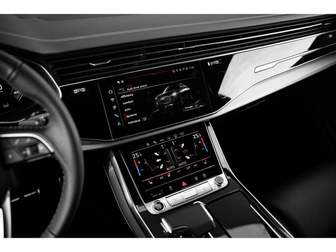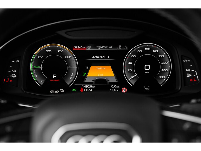 Model nu, design nu, kwaliteit nu, technologie nu. Een fijne jonge Audi Q8 voor een occasionprijs. Zuinig, slim en milieuverantwoord! Deze hybride auto combineert een verbrandingsmotor en een elektromotor: voordelig rijden en gunstig in onderhoud. We nemen u in gedachten even mee. Stop uw bagage moeiteloos achterin dankzij de elektrisch bediende achterklep, neem plaats achter het stuur en zie meteen het luxe lederen interieur. Even het elektrisch bediende glazen panorama dak open en rijden maar! Last van de vorst? Door de stoelverwarming zit u in ieder geval vorstelijk! Natuurlijk kunt u zonder. Maar waarom? Lekker toch, zo'n verwarmd stuurwiel? Bij de rijke uitrusting horen ook 20 inch lichtmetalen velgen, LED koplampen, warmtewerend glas, trailer assistent, dakspoiler en LED-achterlichten. Het slim uitgedachte digitale dashboard toont alle essentiële ritinformatie in één oogopslag. Met de 360 graden camera kunt u elk obstakel of gevaar rondom de auto detecteren, wat uw veiligheid verhoogt. Waar u zelf ook bent, u staat altijd in contact met de auto via de app op uw smartphone. Zo controleert u uiteenlopende functies, ook op afstand. Nooit meer de weg kwijt: daarvoor zorgt het onboard full map navigatiesysteem. De achteropkomend verkeer waarschuwing is een mooie veiligheidsoptie, die middels sensoren in de gaten houdt wat er onderweg achter u gebeurt. Ook is de Audi uitgerust met: kruisend verkeer detectie, electronic climate control, draadloos opladen, DAB ontvangst, regensensor en cruise control. Zoals u mag verwachten van deze Audi Q8 is hij uitgerust met een reeks aan actieve veiligheidssystemen. Dashboardinfo checken zonder uw ogen van de weg te halen? Dat kan met de head-up display. In het instrumentarium kunt u bovendien de verkeersborden zien die u onderweg tegenkomt. Zo helpt deze Audi u om veiliger te rijden. Ongemerkt buiten de rijstrook raken? Nee hoor, het Lane-keeping systeem waarschuwt en corrigeert. Verder is deze auto uitgerust met dodehoekdetectie, forward collision warning system, hill hold functie en frontale botsbescherming. Is uw nieuwsgierigheid gewekt? Bel ons dan snel om deze auto te komen bekijken.