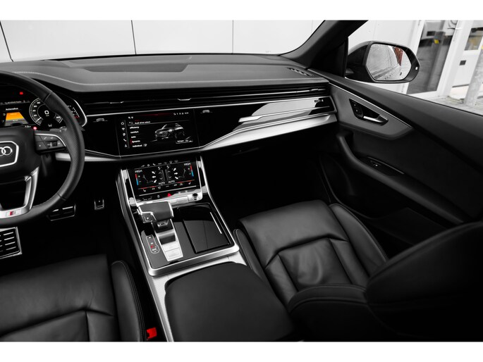 Als u gaat voor kwaliteit zonder compromis, dan is deze Audi Q8 een auto voor u. Grijze muizen zijn er al genoeg. Daarom heeft deze auto een lekker pittige S-Line styling. Een krachtige motor geeft deze auto zijn sportieve prestaties. Zon en frisse lucht krijgen vrij spel dankzij het elektrisch bediende glazen panorama dak; de elektrisch bedienbare achterklep maakt het u gemakkelijk en u voelt zich omgeven door luxe van het lederen interieur! Zit u goed? De stoelen zijn eenvoudig instelbaar dankzij de elektrische bediening met geheugen. Deze auto levert de ultieme rijervaring met eersteklas functies zoals stoelverwarming, een verwarmbare achterbank en een verwarmbaar stuur. Opvallend is de geavanceerde matrix LED-verlichting met daglichtkwaliteit. De koplampen dimmen automatisch het deel van de lichtstraal waar voor- of tegenliggers in rijden. De overige segmenten blijven aan en verlichten de weg maximaal. In deze Audi profiteert u onder andere ook van: 21 inch lichtmetalen velgen, sportonderstel, adaptief dempingsysteem, warmtewerend glas, trailer assistent en dakspoiler. Deze auto is voorzien van een digitaal dashboard waarmee u de cockpit-interface kunt personaliseren. De 360 graden camera op deze auto is een innovatieve functie die de obstakels rondom de auto in beeld brengt voor een optimaal zicht. Adaptive cruise control houdt de ingestelde snelheid vast en houdt automatisch afstand tot uw voorligger. In de file rijden vreet concentratie. Daarom komt de file assistent te hulp om veilig afstand te houden en automatisch te stoppen als uw voorligger stilstaat. Bij deze auto is uw smartphone een geavanceerde afstandsbediening. Remote services brengen u overal in contact met uw auto. En dan is deze auto ook nog eens voorzien van full map navigatiesysteem, kruisend verkeer detectie, electronic climate control, draadloos opladen, DAB ontvangst en regensensor. Als bestuurder van deze Audi bent u nooit alleen. U wordt onderweg bijgestaan door technologische hulpmiddelen die samen met u de weg in de gaten houden. Als het nodig is, grijpen ze zelfs in, door te remmen of bij te sturen. U verliest de weg geen seconde uit het oog. De dashboardinfo wordt in uw zichtveld geprojecteerd door de head-up display. Onderweg zorgt verkeersborddetectie ervoor dat u geen waarschuwingsbord mist. Ongemerkt buiten de rijstrook raken? Nee hoor, het Lane-keeping systeem waarschuwt en corrigeert. De veiligheid van deze auto wordt verder verhoogd door dodehoekdetectie, forward collision warning system, hill hold functie en frontale botsbescherming. Na deze beschrijving is er nog maar één ding te doen: een proefrit maken! Neem contact op en we prikken de dag en de tijd.