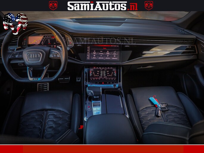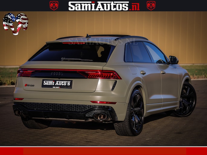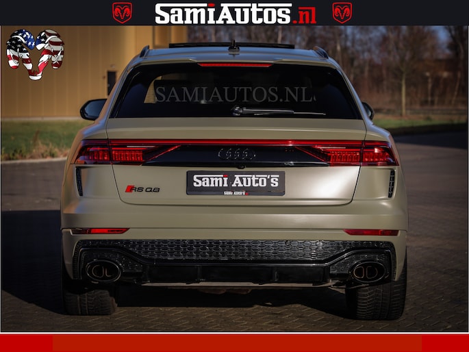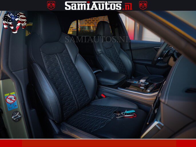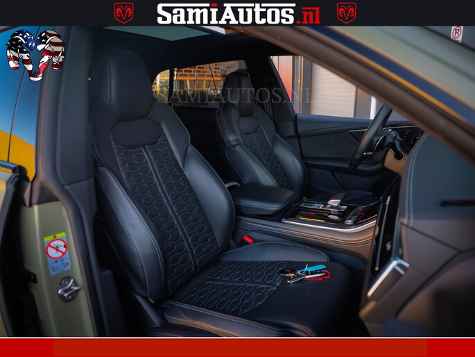 RSQ8 600PK 4.0 TFSI | MATT OLIVE GREEN | QUATTRO | MEGA VOLLE RSQ8 | BANG & OLUFSEN | HUD | 4 WIELBESTURING | 23 INCH AUDI SPORT WHEELS | RS BEKLEDING ZWART | PANO | SOFTCLOSE | De Lamborghini Urus en Audi RS Q8 zijn beide supersnelle SUV's met dezelfde basis (4.0L V8 twin-turbo motor van de VW Group)