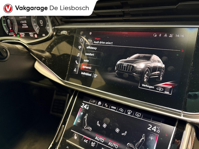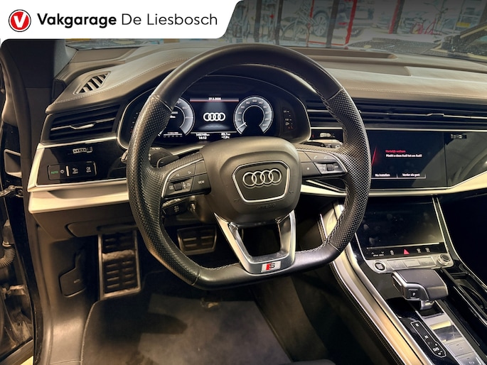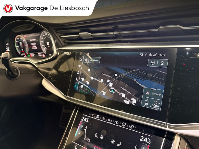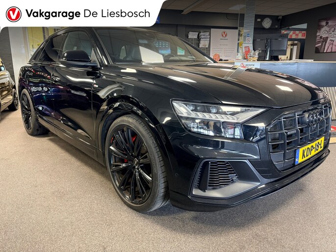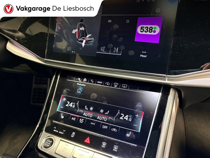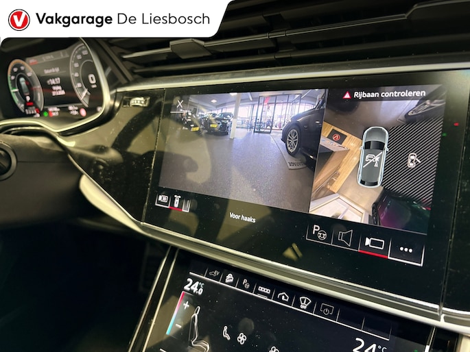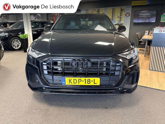 De nieuwste veiligheidssystemen komen in deze Audi Q8 samen. De camera van de verkeersborddetectie herkent verschillende soorten verkeersborden en toont deze op het dashboard. Het veiligheidssysteem lane assist waarschuwt als u per ongeluk buiten uw rijbaan terechtkomt. Bovenop deze veiligheidsfeatures heeft deze Audi bovendien head-up display en bandenspanningcontrolesysteem.