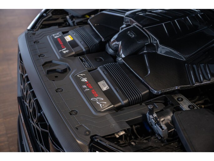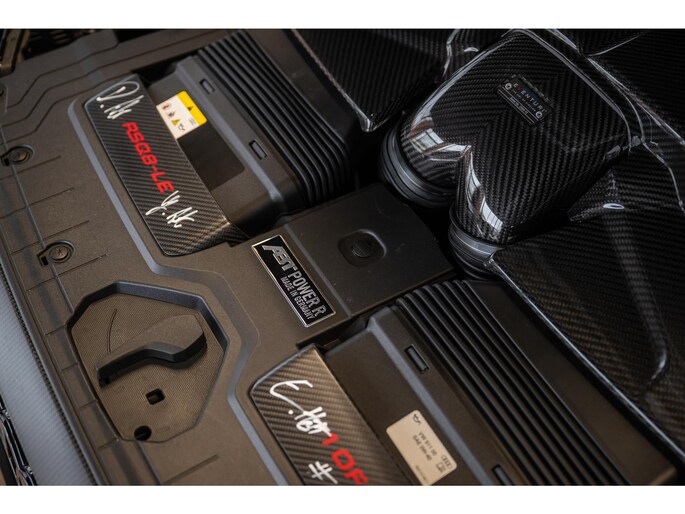 Onder de motorkap bevindt zich een originele handtekening van de familie ABT, aangebracht bij productie van de allereerste Audi RSQ8-LE ABT Legacy Edition.