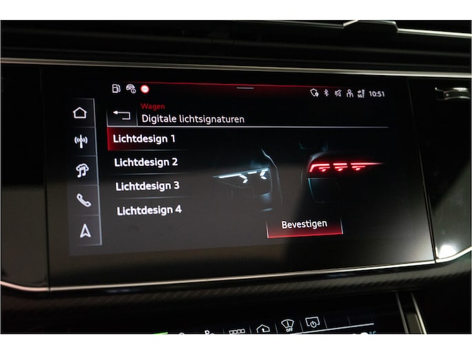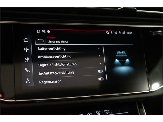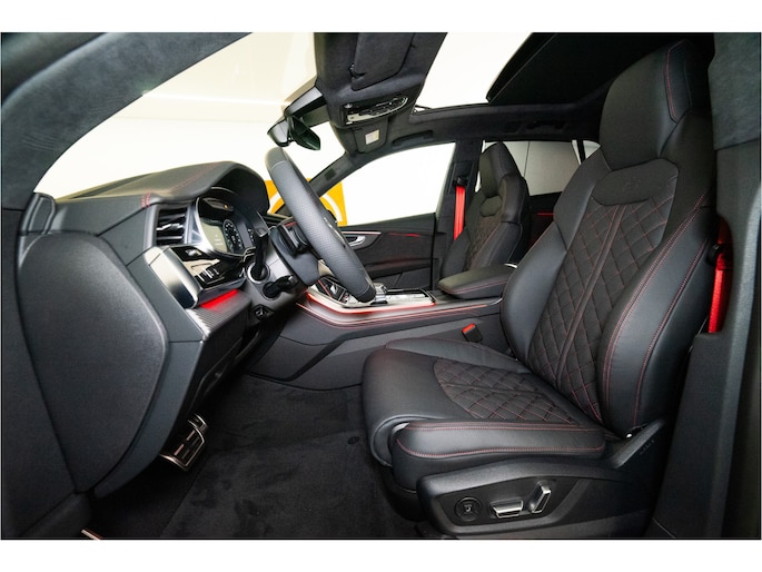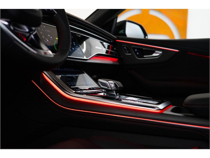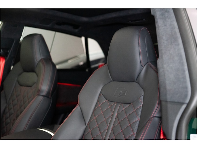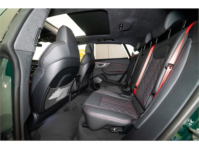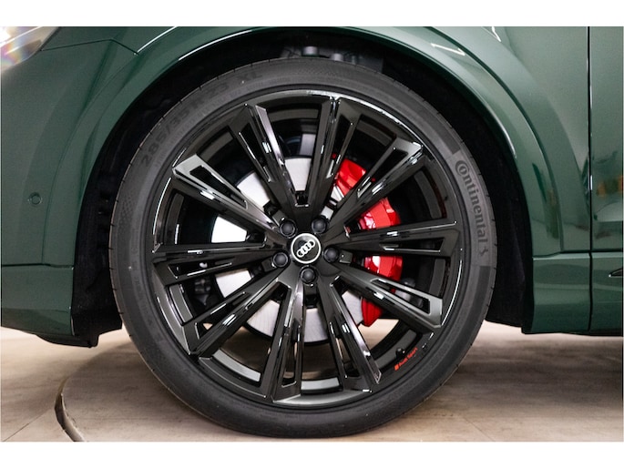 De zeer exclusieve Goodwood Green Pearl Effect lak — afkomstig uit de Audi Exclusive kleurenlijn — maakt deze Q8 een zeldzame verschijning. Verder is de auto voorzien van vrijwel alle denkbare opties: HD Matrix LED met Laserlicht, 23” Audi Sport velgen, panoramadak, luchtvering, ventilatie- en massagezetels, luxe lederen interieur, uitgebreide assistentiepakketten en 360° camerasysteem.