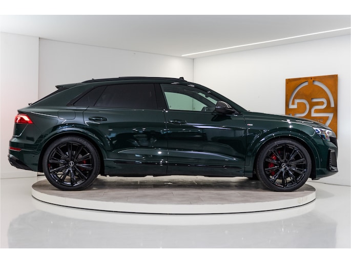 Nieuw binnen, per direct uit voorraad leverbaar! Prachtige Audi Q8 60 TFSI e Quattro Competition – 360 kW / 490 pk – Audi Exclusive – Goodwood Green Pearl – Luchtvering – 23” – Full Options