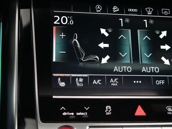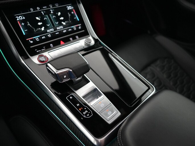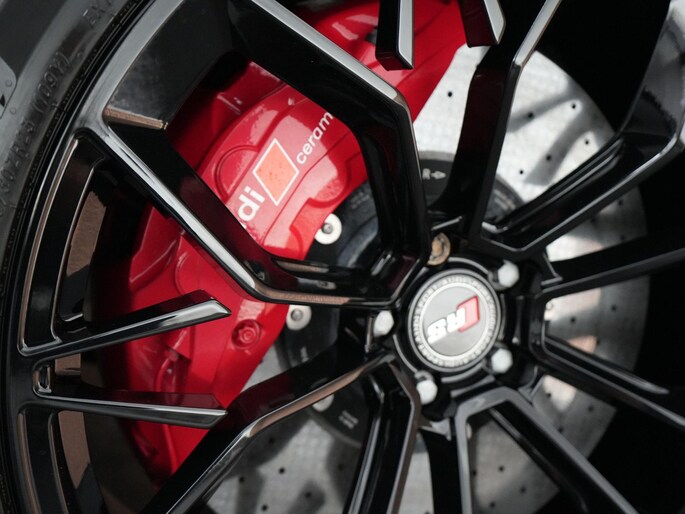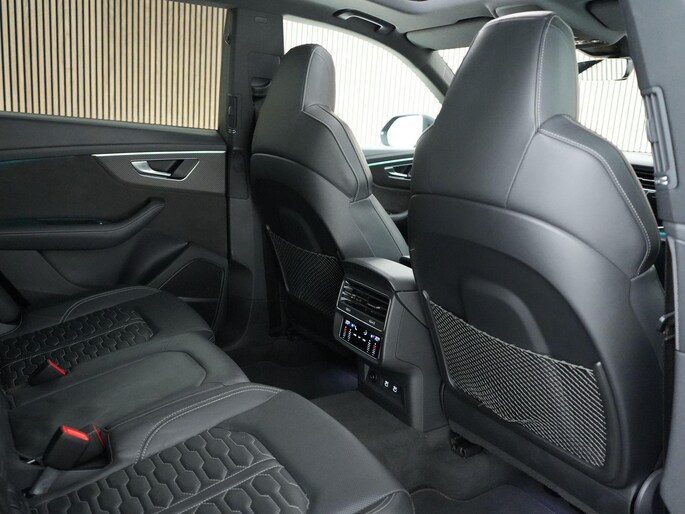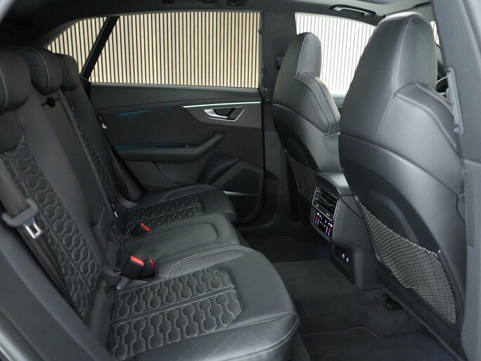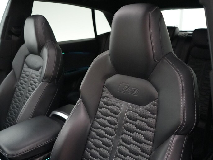Het interieur biedt ultiem comfort met Valcona lederen RS sportstoelen (verwarming, ventilatie en massage), panoramadak, Bang & Olufsen 3D sound system, head-up display en Audi Virtual Cockpit.