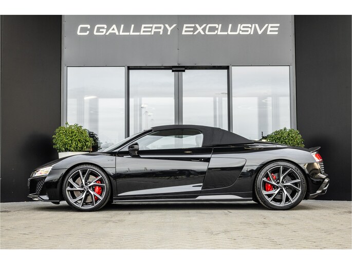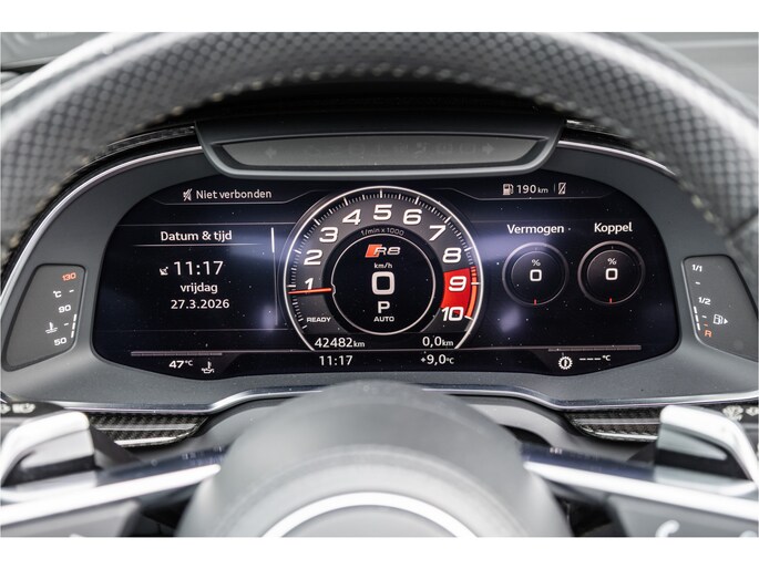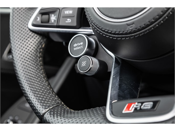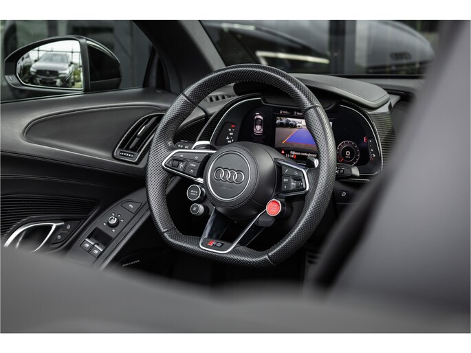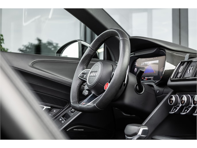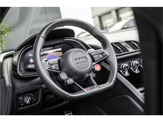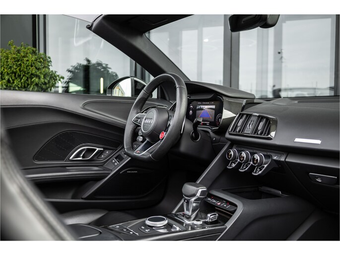 De 5.2-liter atmosferische V10 in de R8 Performance is een anachronisme in de mooiste zin van het woord. Geen turbo, geen hybride hulp — uitsluitend tien cilinders die tot 10.000 toeren per minuut draaien en 620 pk produceren op een manier die geen enkele andere motor ter wereld kan evenaren. Het geluid bij volledig gas is geen bijproduct — het is het hoofdgerecht. Rauw, direct en ongegeneerd prachtig. Met het dak open en de uitlaat op sport is de R8 Spyder niet zomaar een rijervaring. Het is een gebeurtenis.